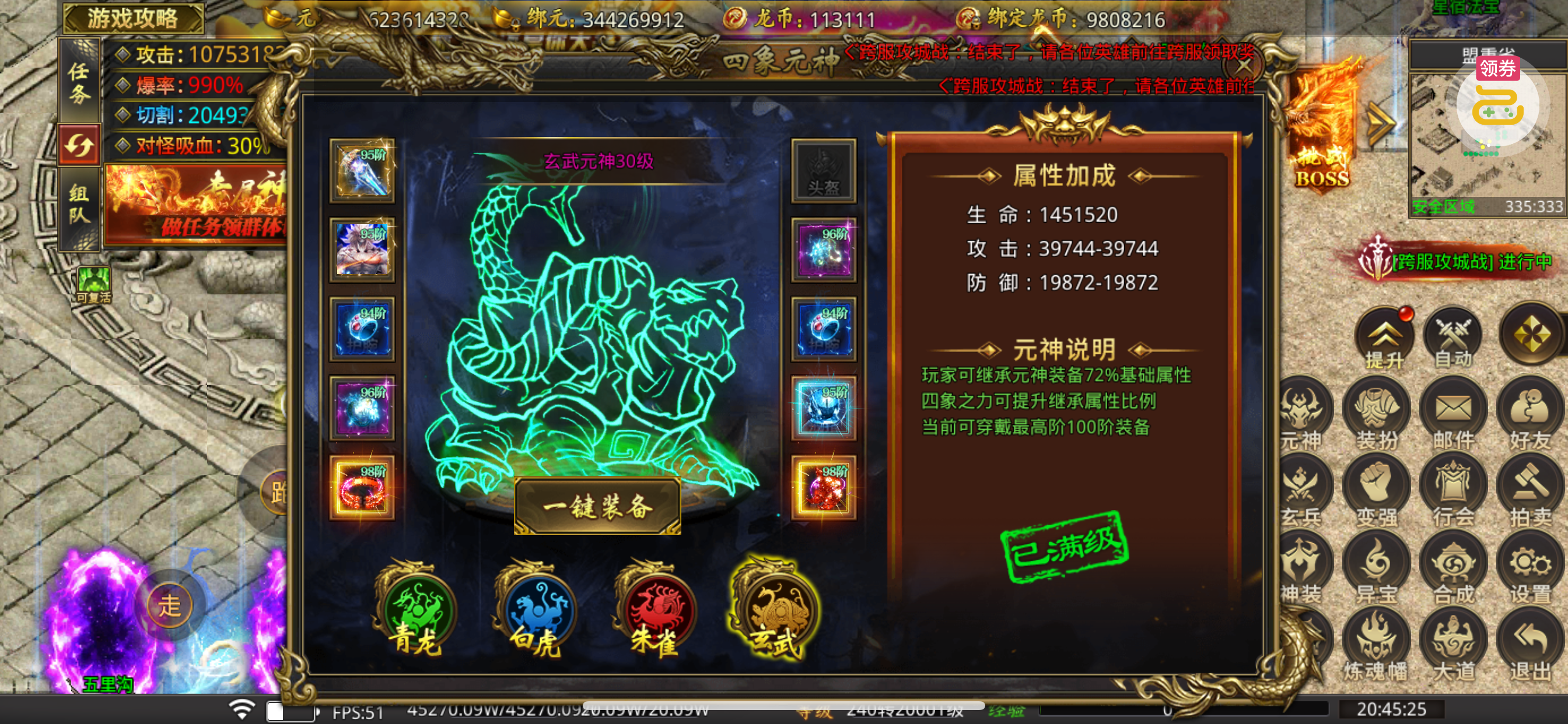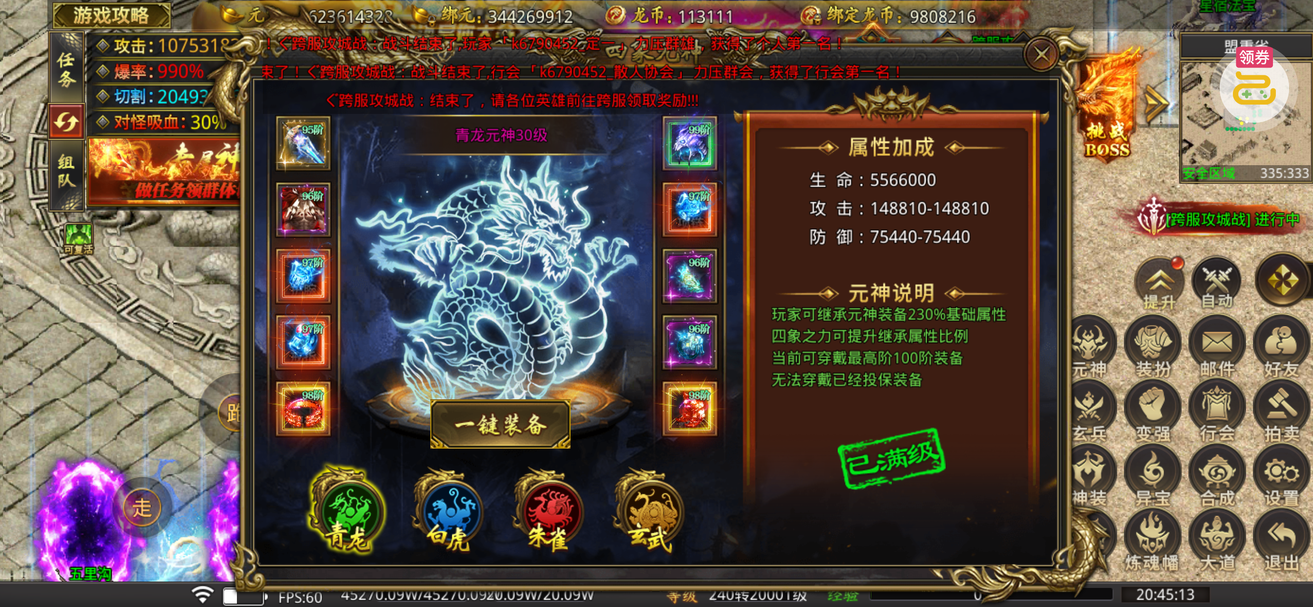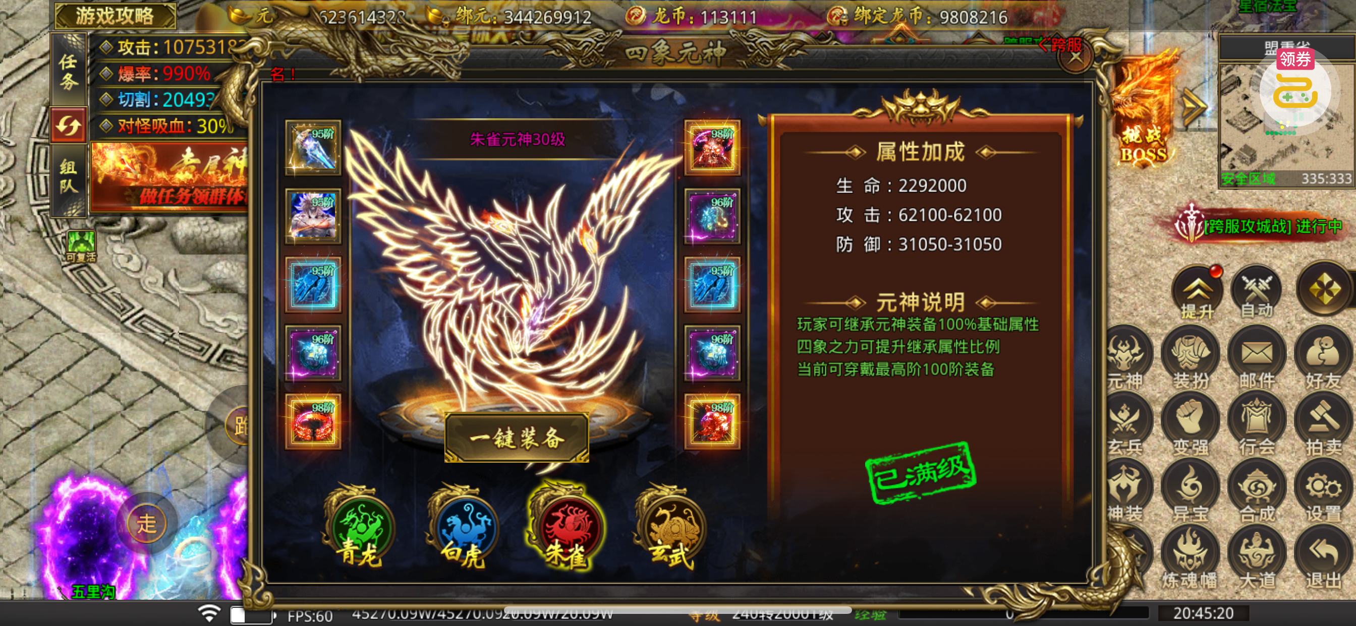 装备都是96.97.98的了,很不错。