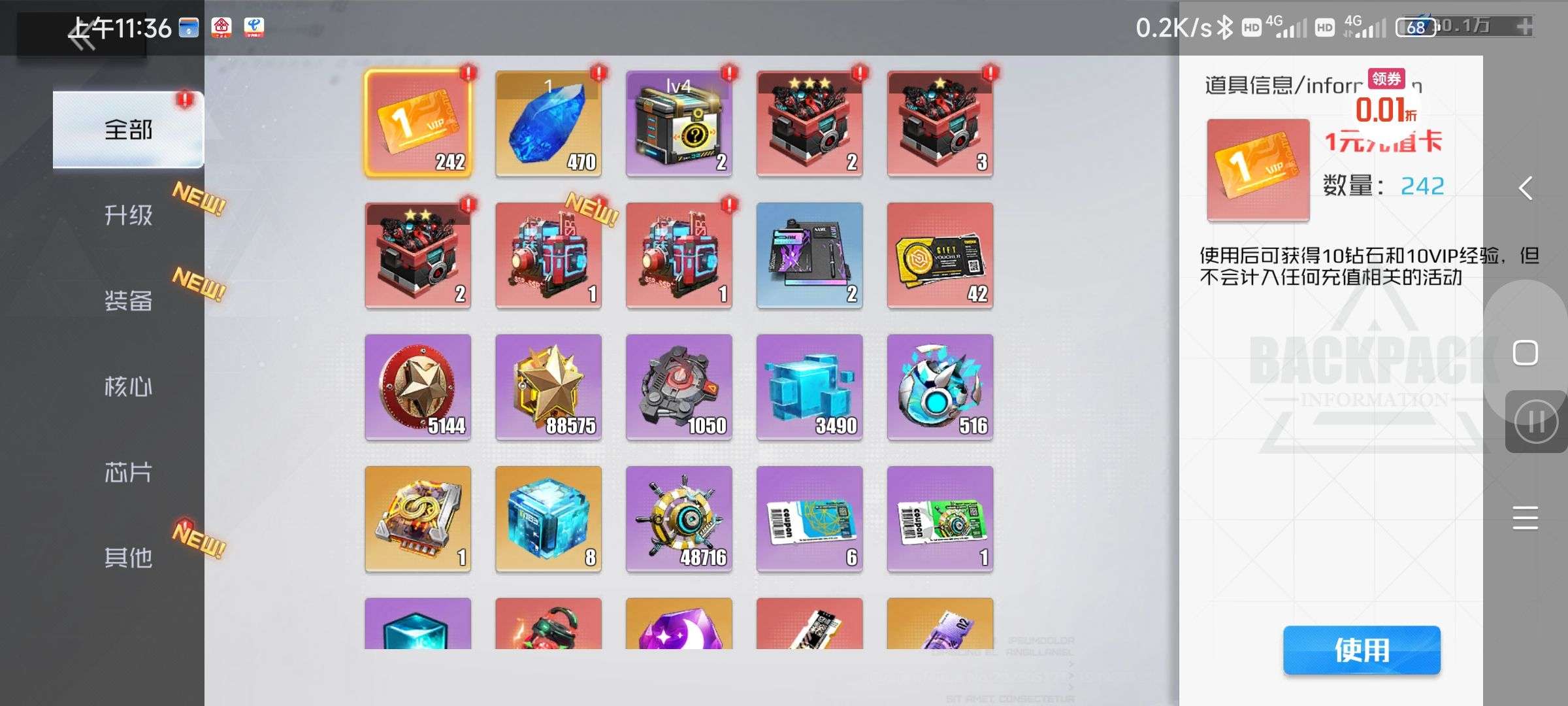 芯片熔炼石*1、离子探针*50、净化金属*50(每个账号限领一次)