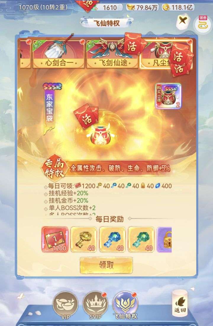 五行心法x1、洗炼石x20、2倍经验秘药x2(每个账号限领一次)