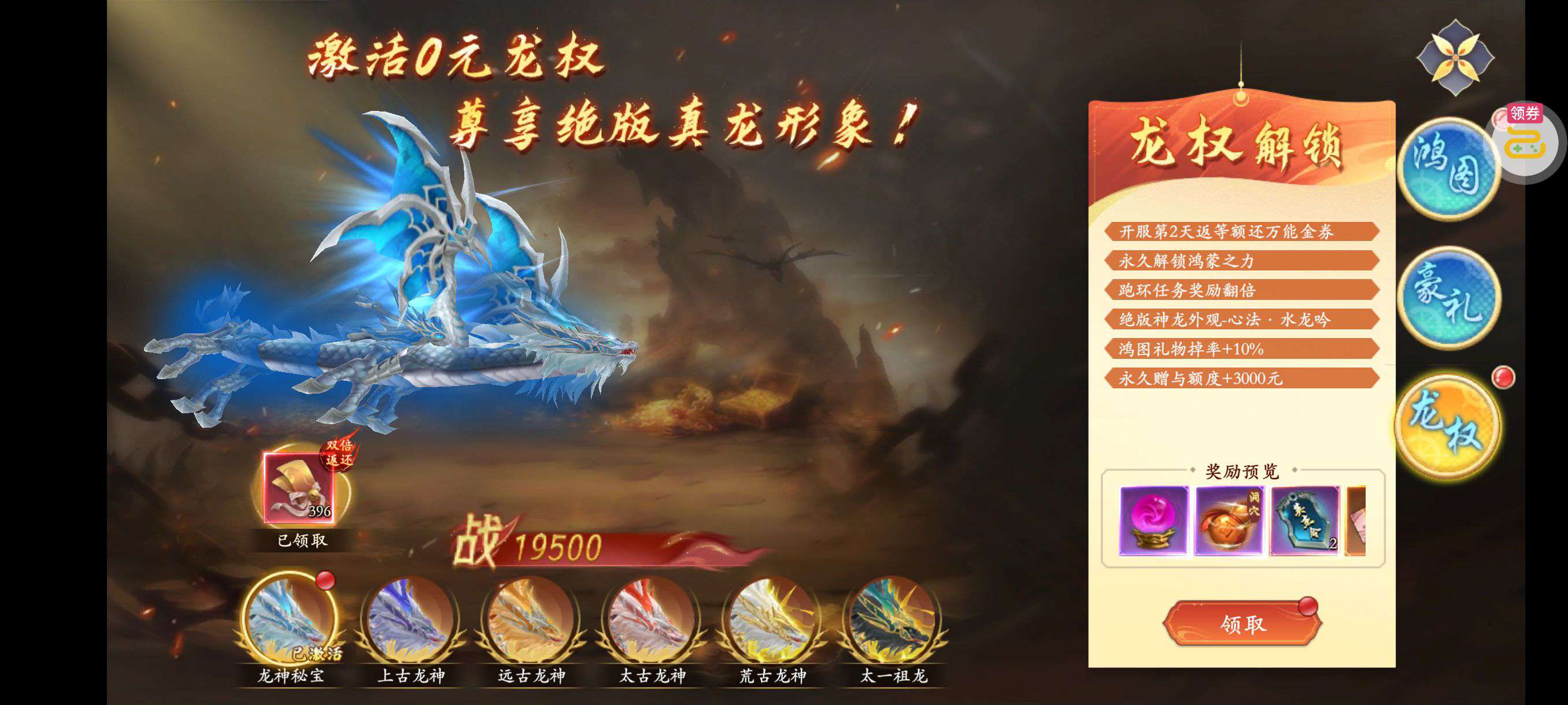 强化药剂*200、钻石招募币*20、金币*50W(每个账号限领一次)