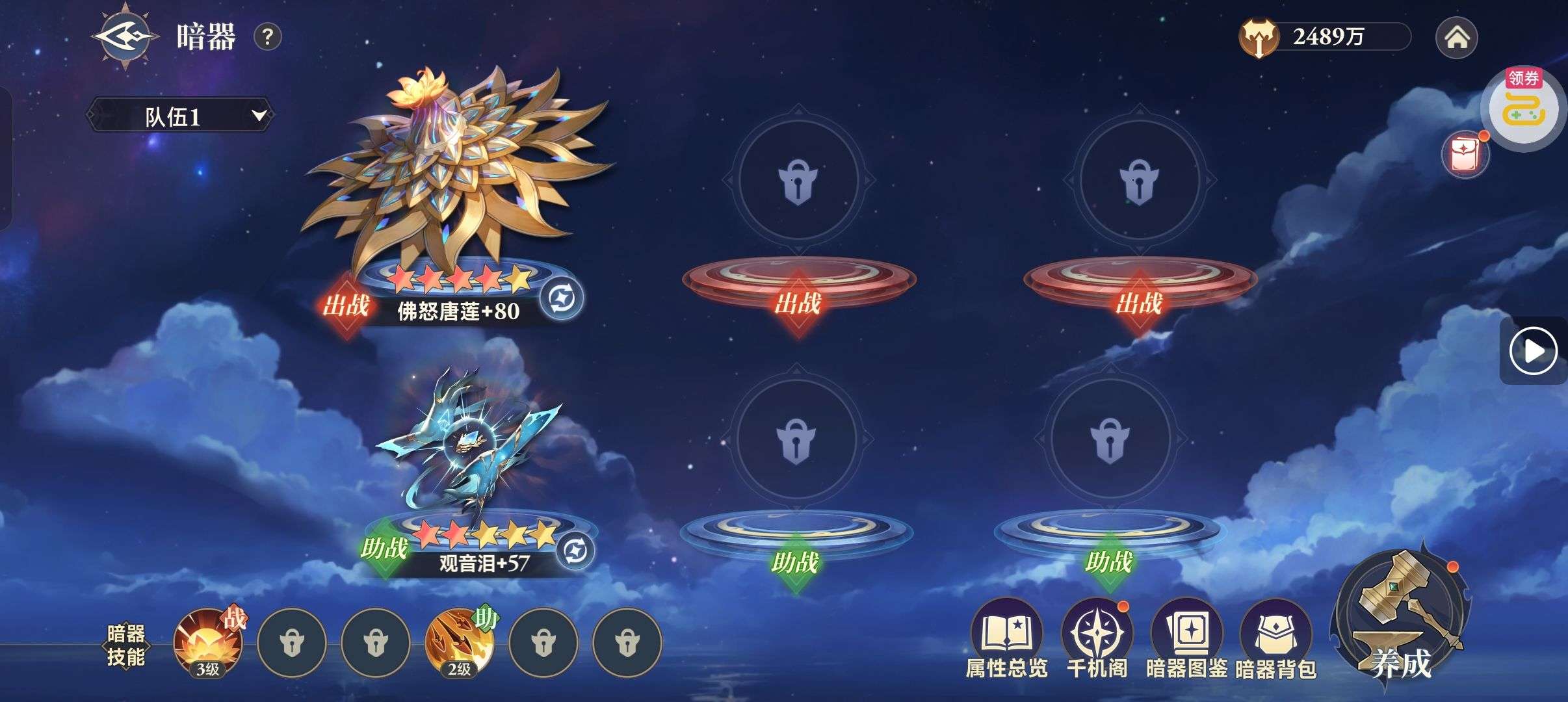 夺宝券*1、比武令*1、5星随机将魂*10(每个账号限领一次)