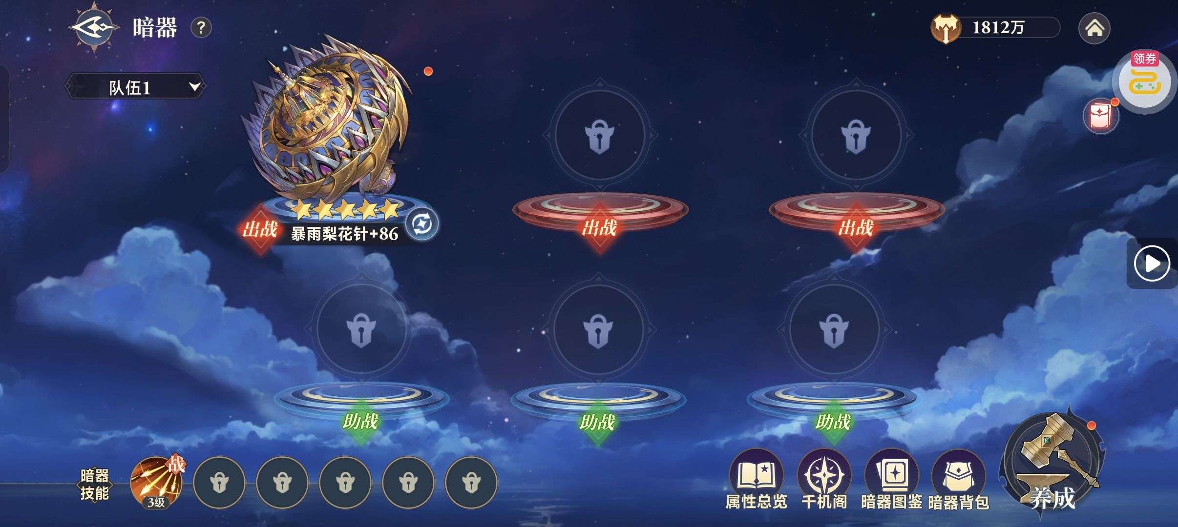 夺宝券*1、比武令*1、5星随机将魂*10(每个账号限领一次)