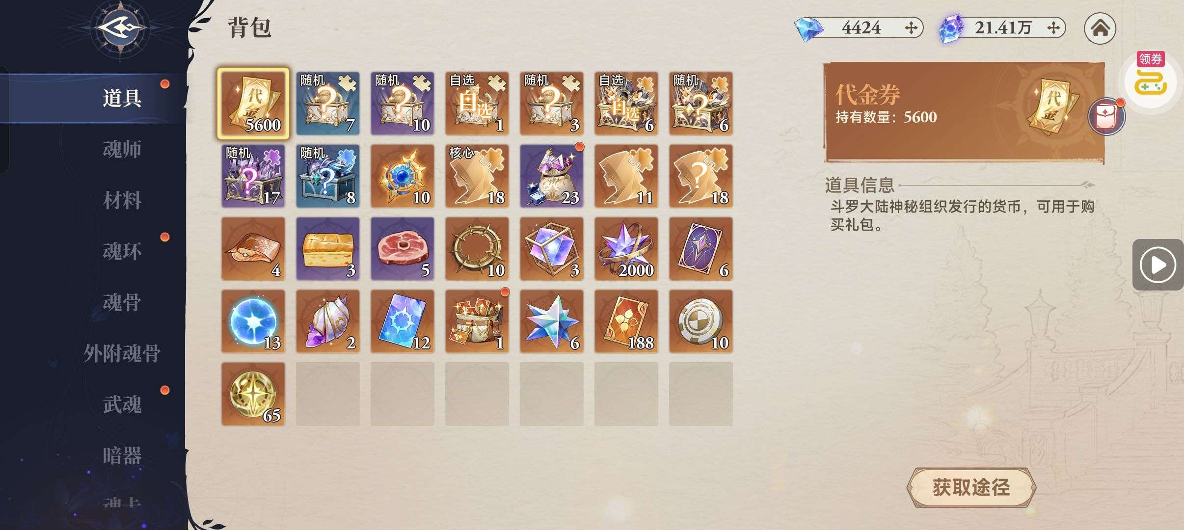 魂晶*888,魂师召唤券*10,武魂水晶*5(每个账号限领一次)