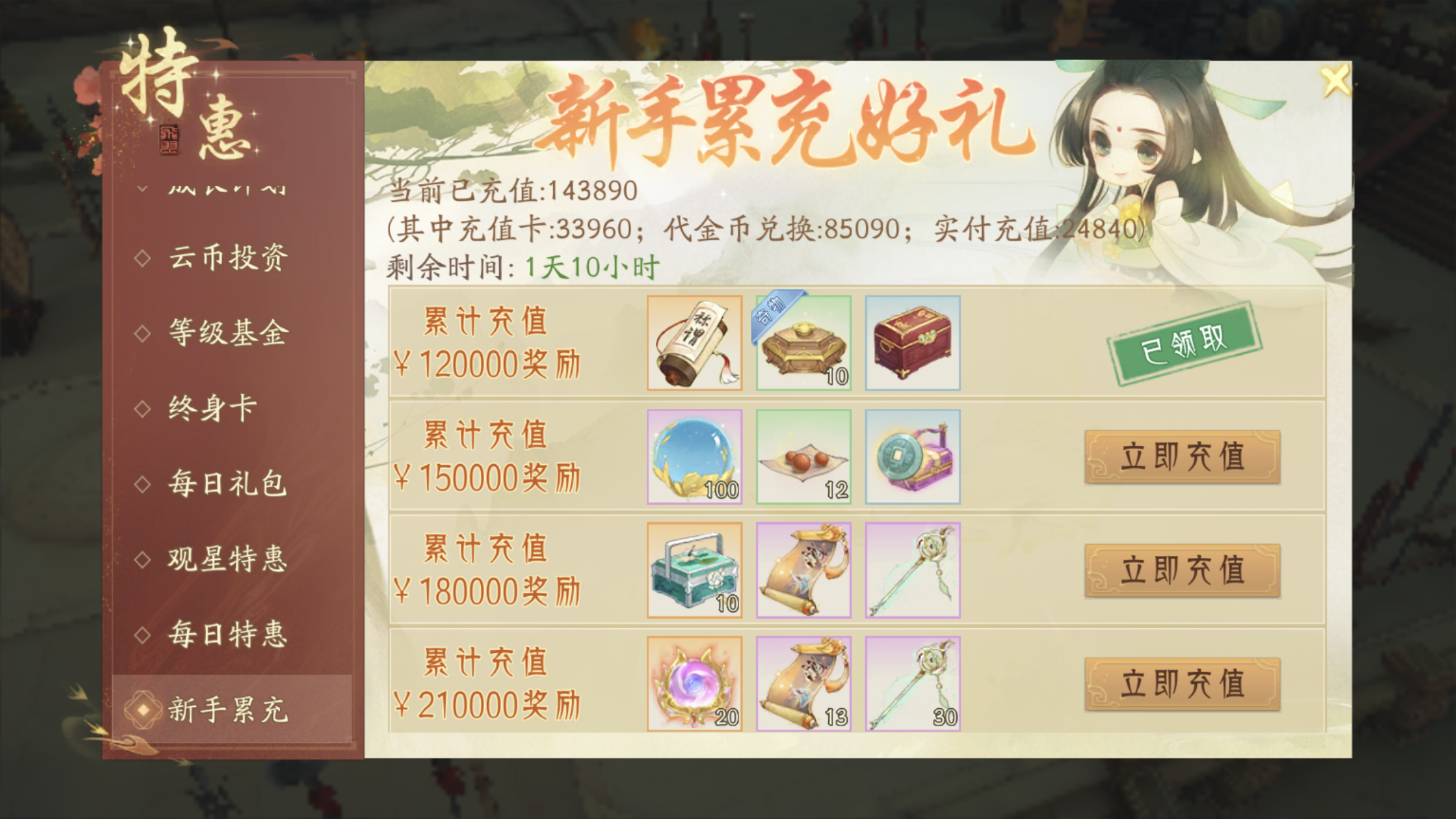 累计充值: