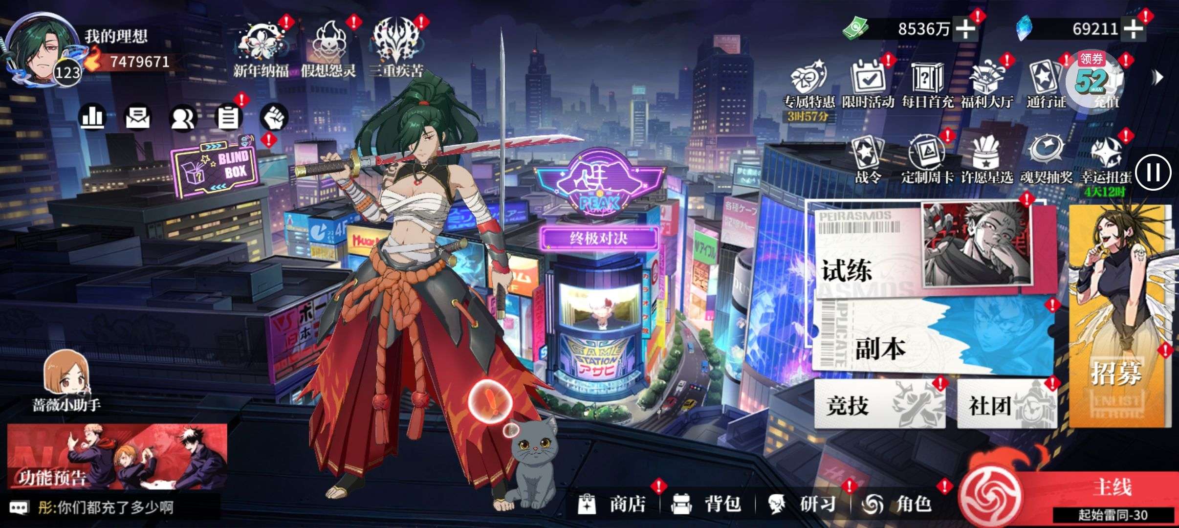 卡啊,战令,很多东西,战力应该可以升挺多,最近没心思玩了,就上游戏做任务就下号了,大概玩了1个月左右
