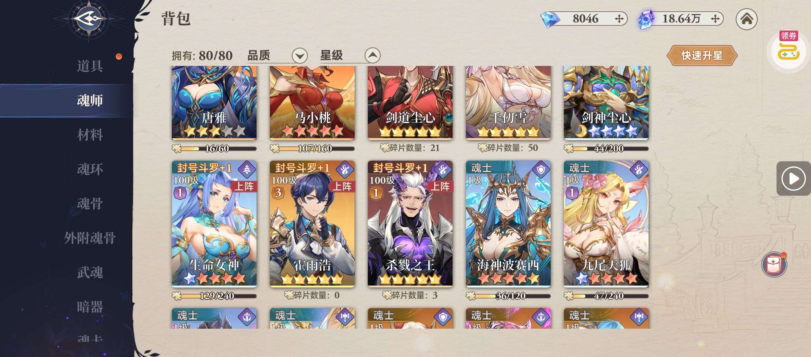 魂晶*888,魂师召唤券*10,武魂水晶*5(每个账号限领一次)
