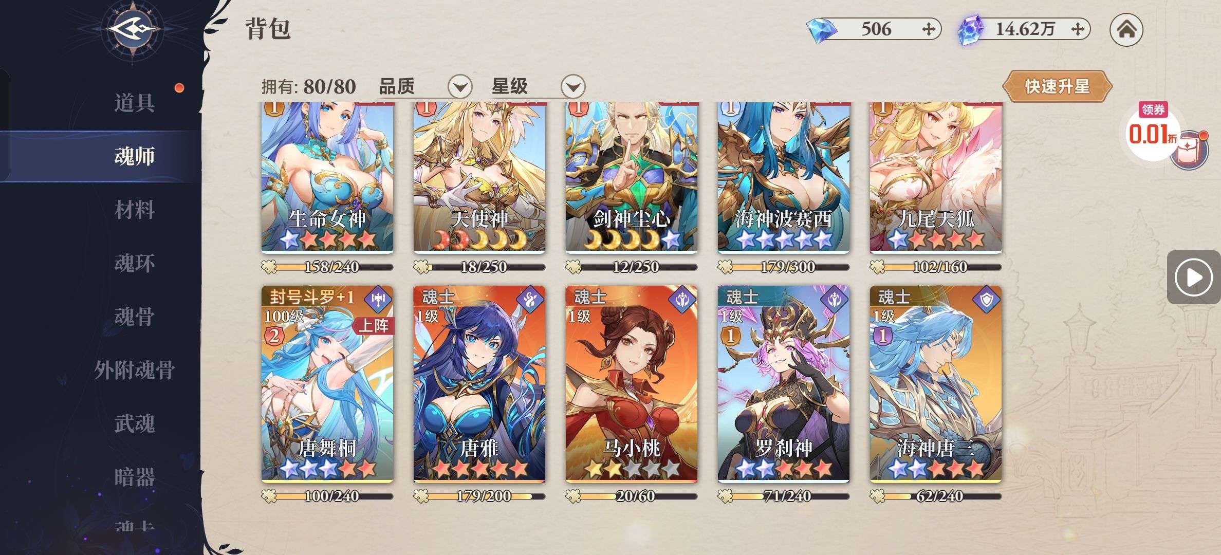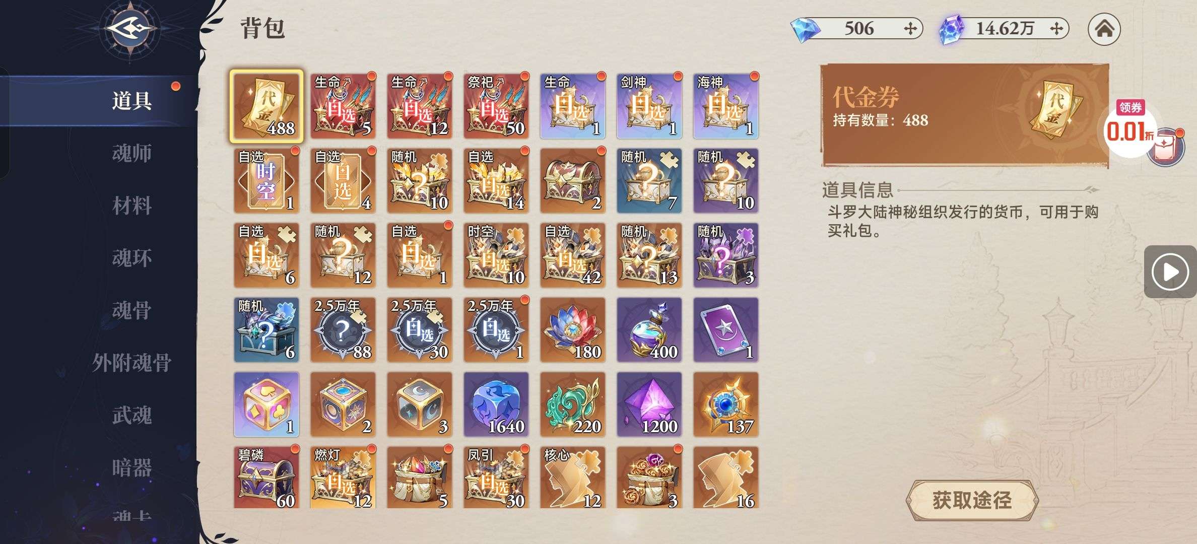 魂晶*888,魂师召唤券*10,武魂水晶*5(每个账号限领一次)