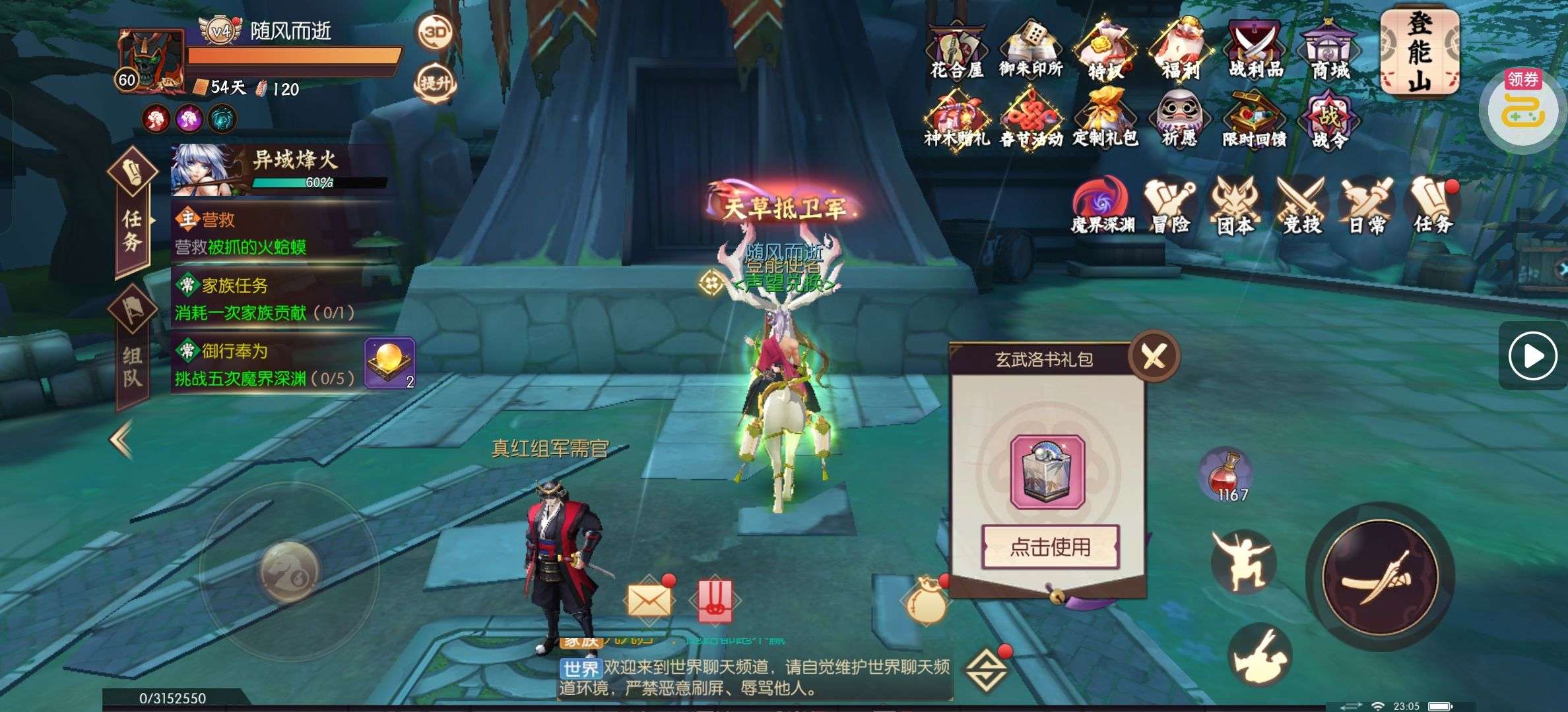 夺宝券*1、比武令*1、5星随机将魂*10(每个账号限领一次)