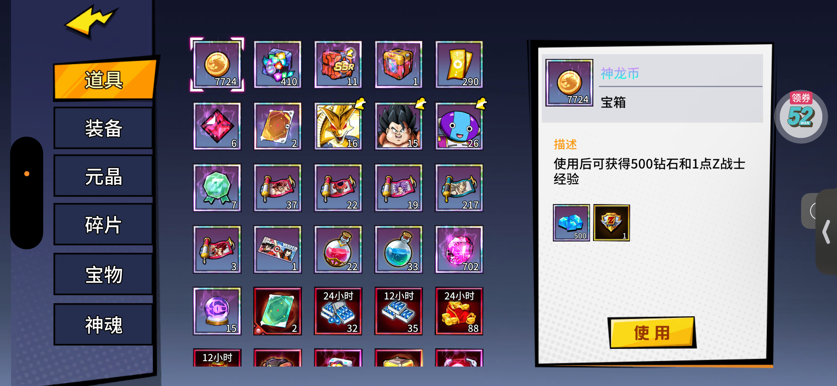 魂晶*888,魂师召唤券*10,武魂水晶*5(每个账号限领一次)