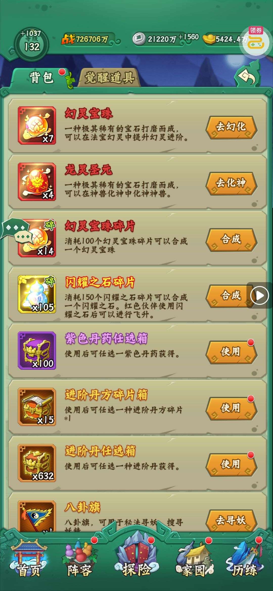 五行心法x1、洗炼石x20、2倍经验秘药x2(每个账号限领一次)