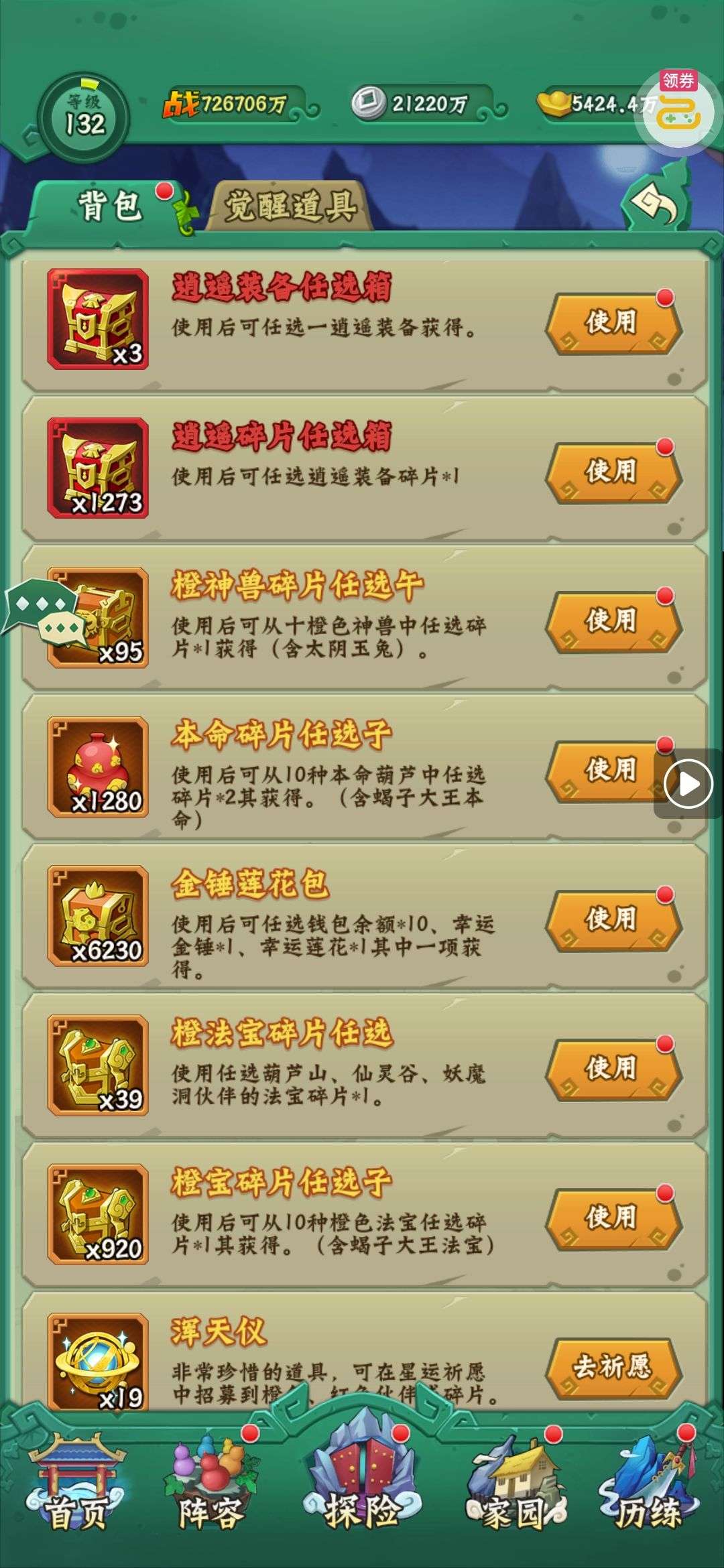 夺宝券*1、比武令*1、5星随机将魂*10(每个账号限领一次)