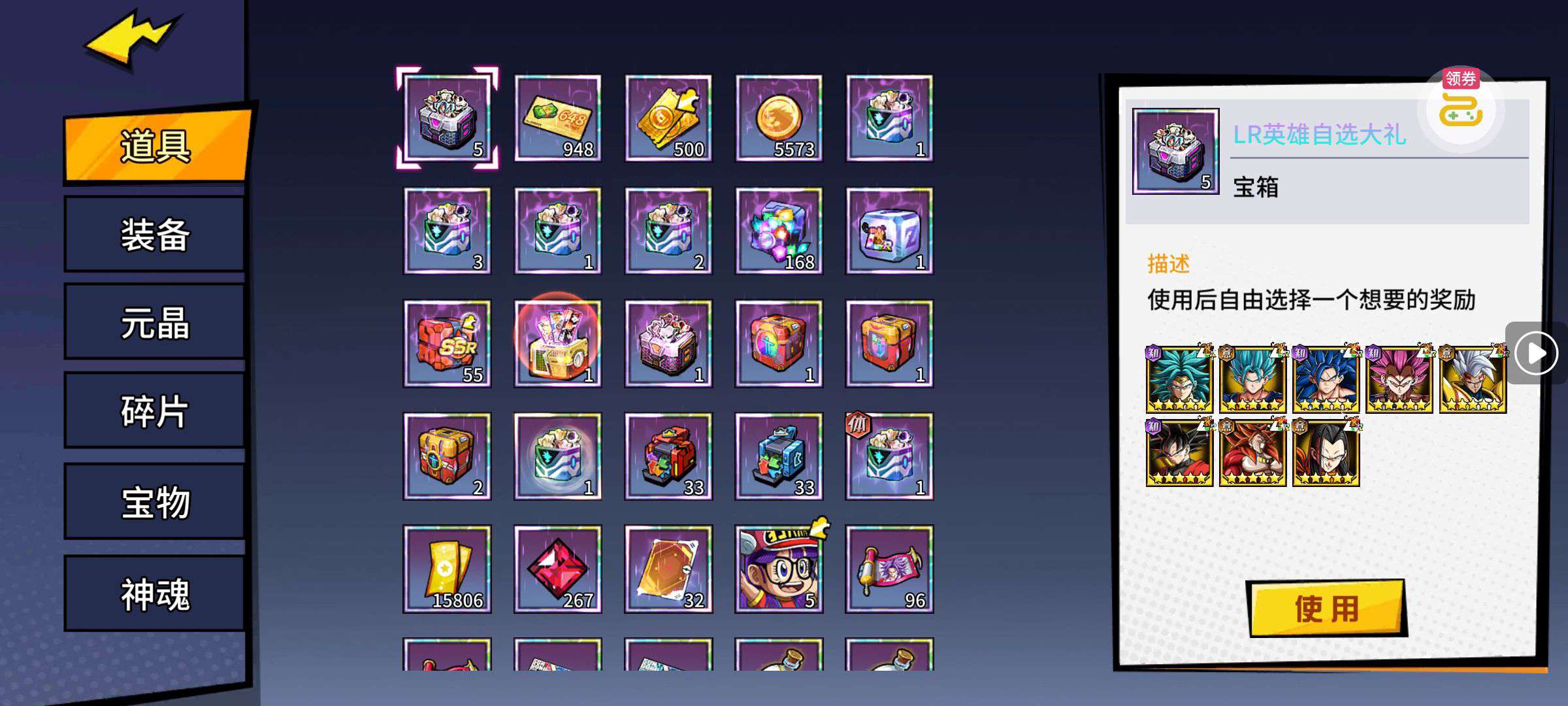 魂晶*888,魂师召唤券*10,武魂水晶*5(每个账号限领一次)