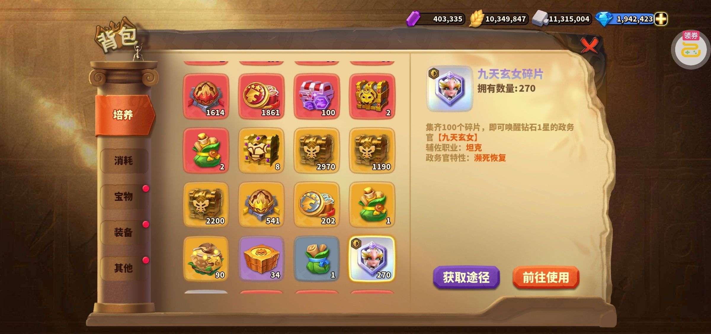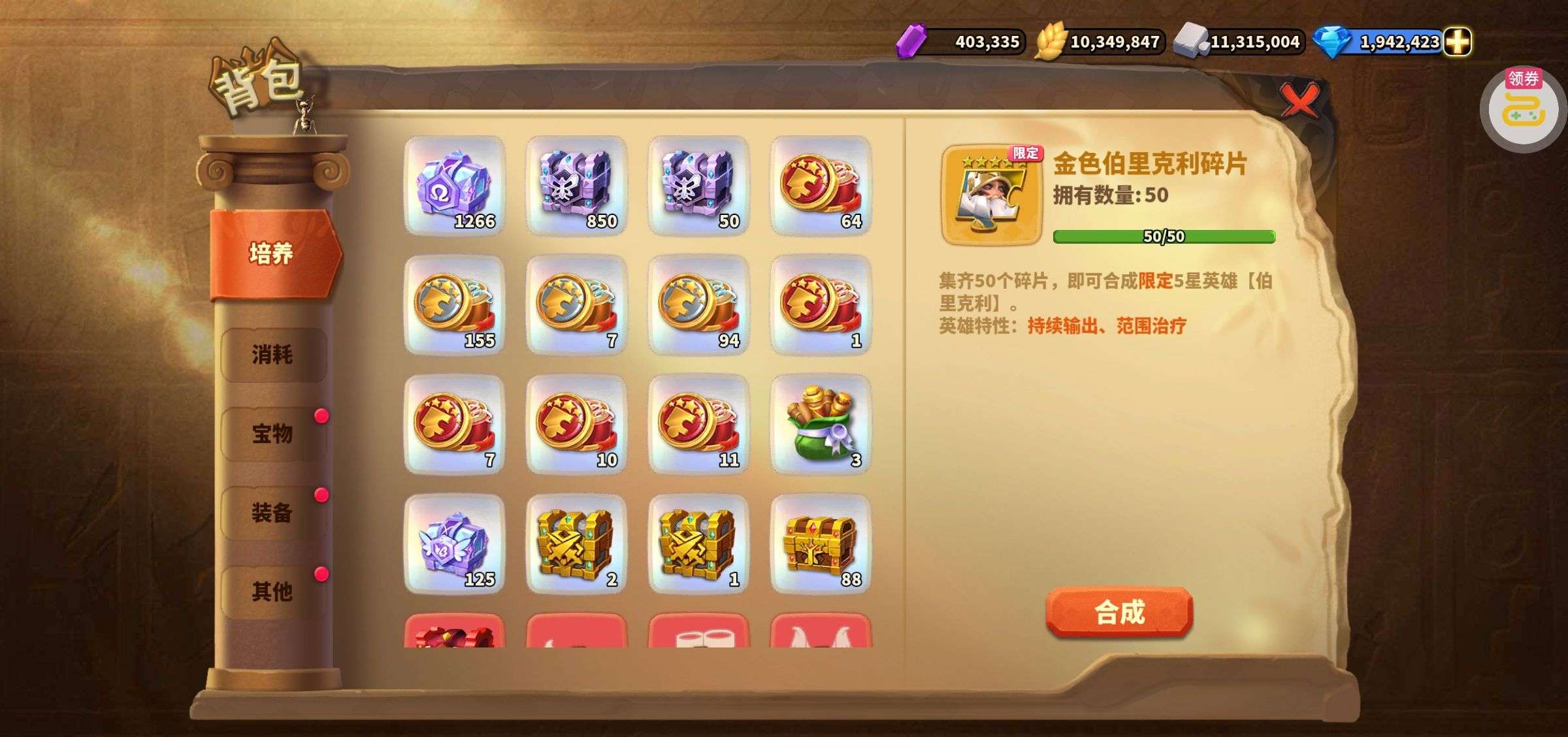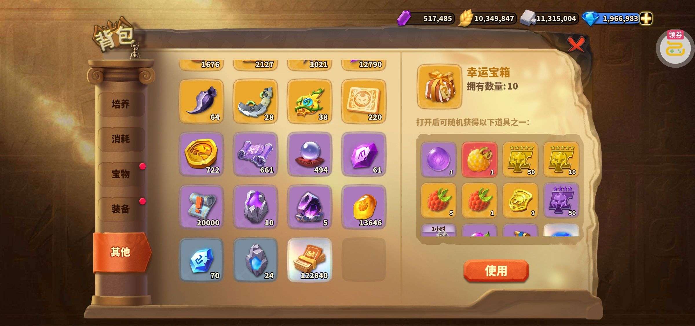 夺宝券*1、比武令*1、5星随机将魂*10(每个账号限领一次)