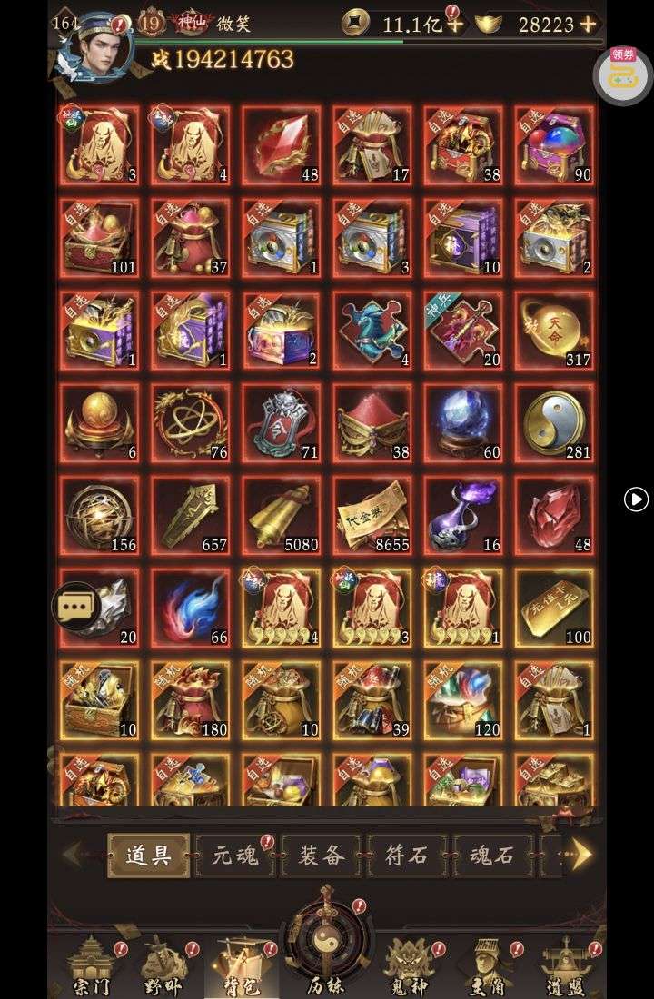 五行心法x1、洗炼石x20、2倍经验秘药x2(每个账号限领一次)