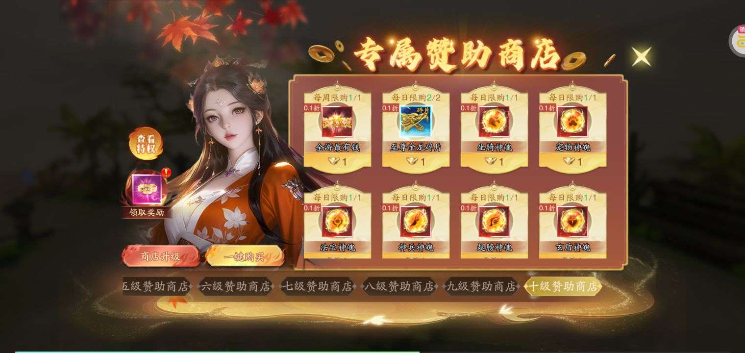 常规的功能和特权基本都开通了,一些稀缺套装也买了,拿到手就可以PK,玩了2月年后没时间玩了