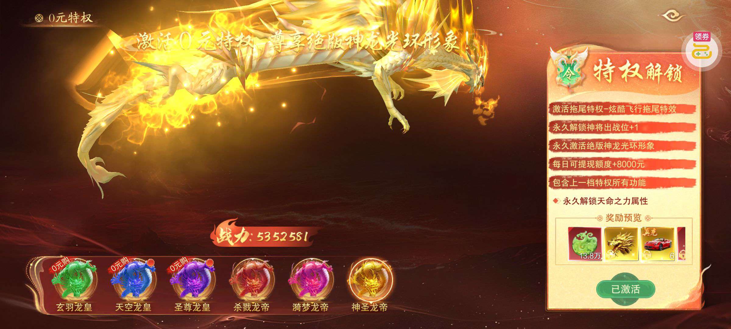 强化药剂*200、钻石招募币*20、金币*50W(每个账号限领一次)