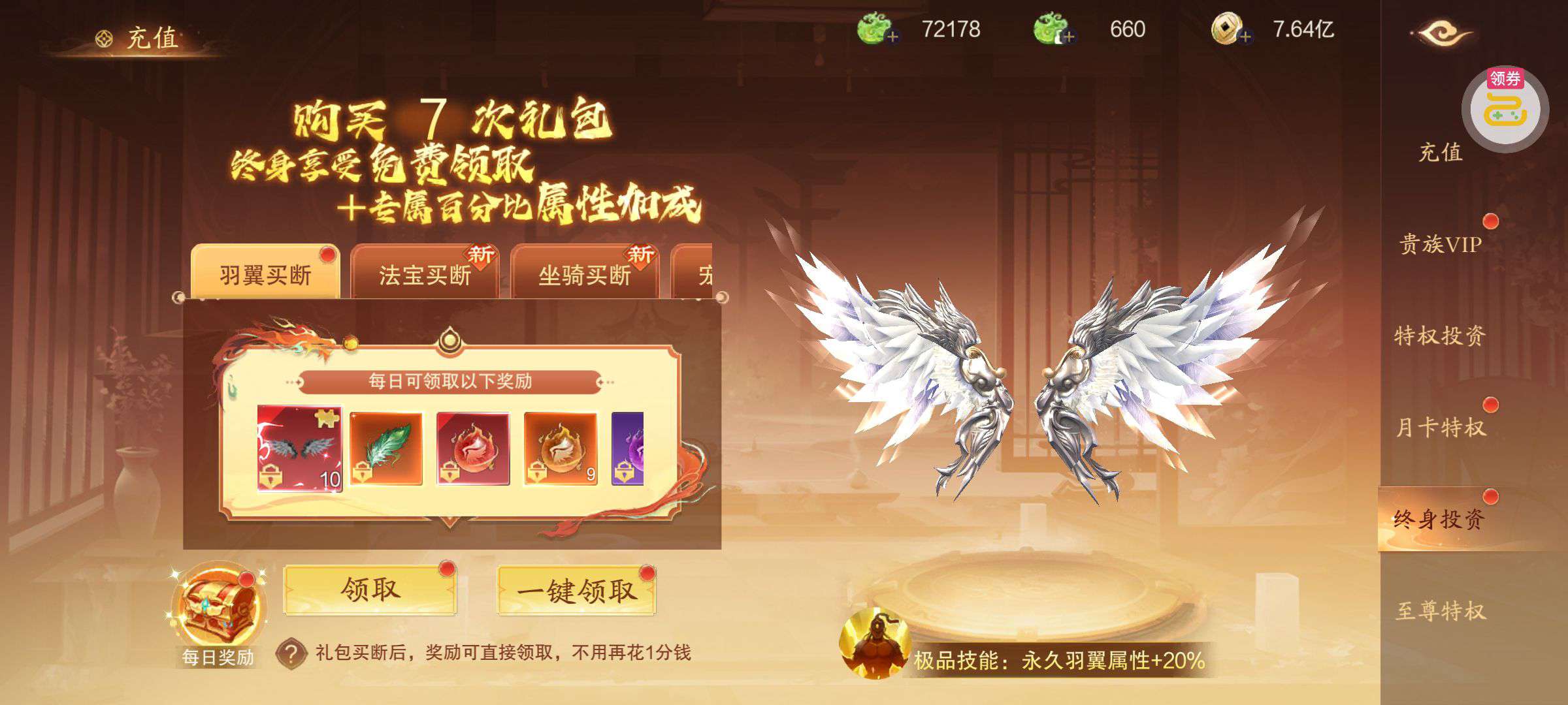 五行心法x1、洗炼石x20、2倍经验秘药x2(每个账号限领一次)