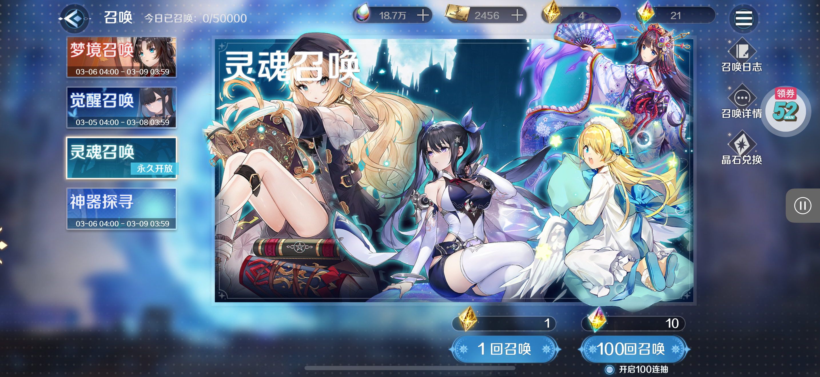 魂晶*888,魂师召唤券*10,武魂水晶*5(每个账号限领一次)