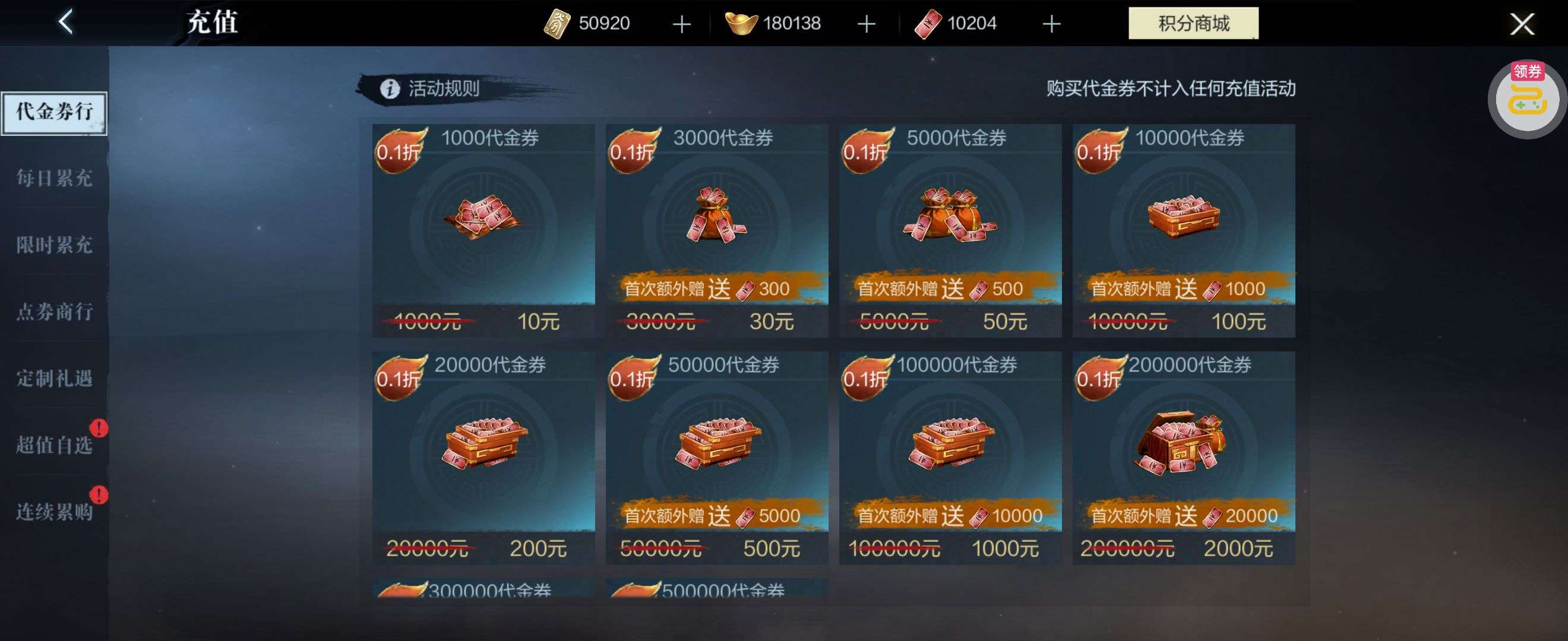 5万多点券,1万多代金券一堆上手就能玩,捡到就赚到