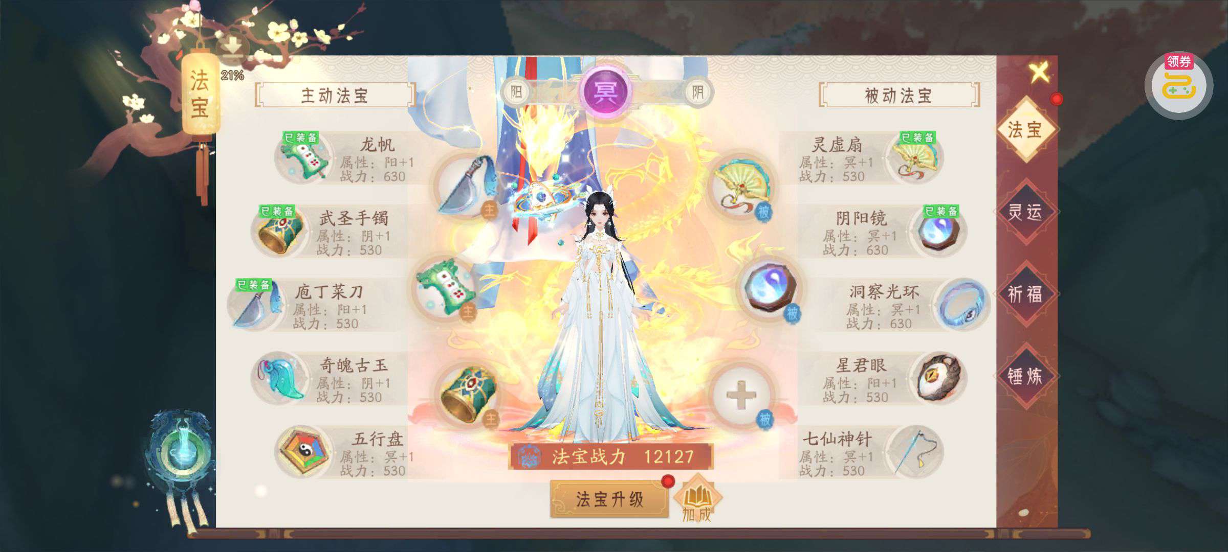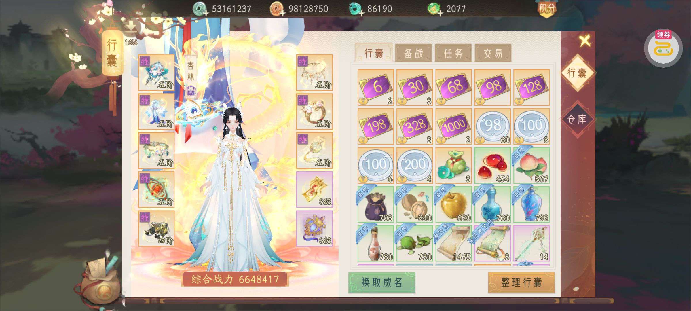 夺宝券*1、比武令*1、5星随机将魂*10(每个账号限领一次)