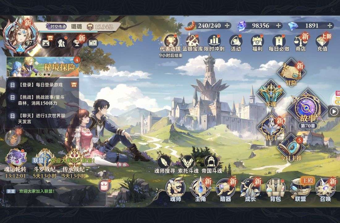 魂晶*888,魂师召唤券*10,武魂水晶*5(每个账号限领一次)