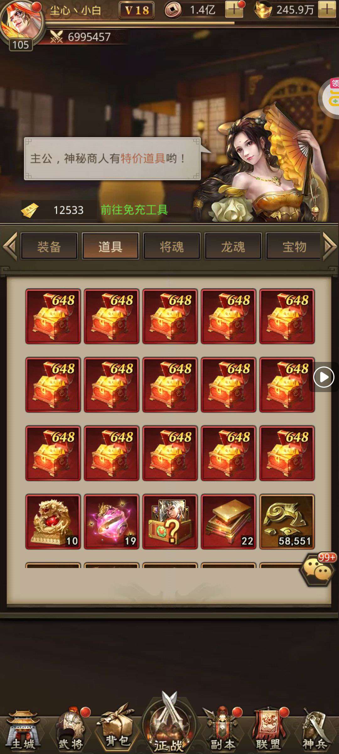 夺宝券*1、比武令*1、5星随机将魂*10(每个账号限领一次)