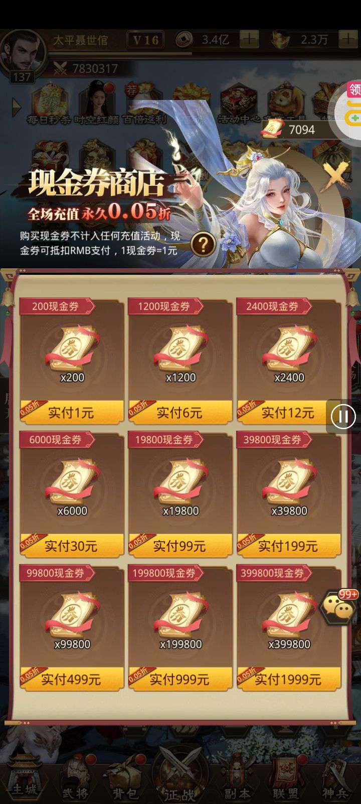 还有七千现金劵没用,六神阵容,最强援军刘备