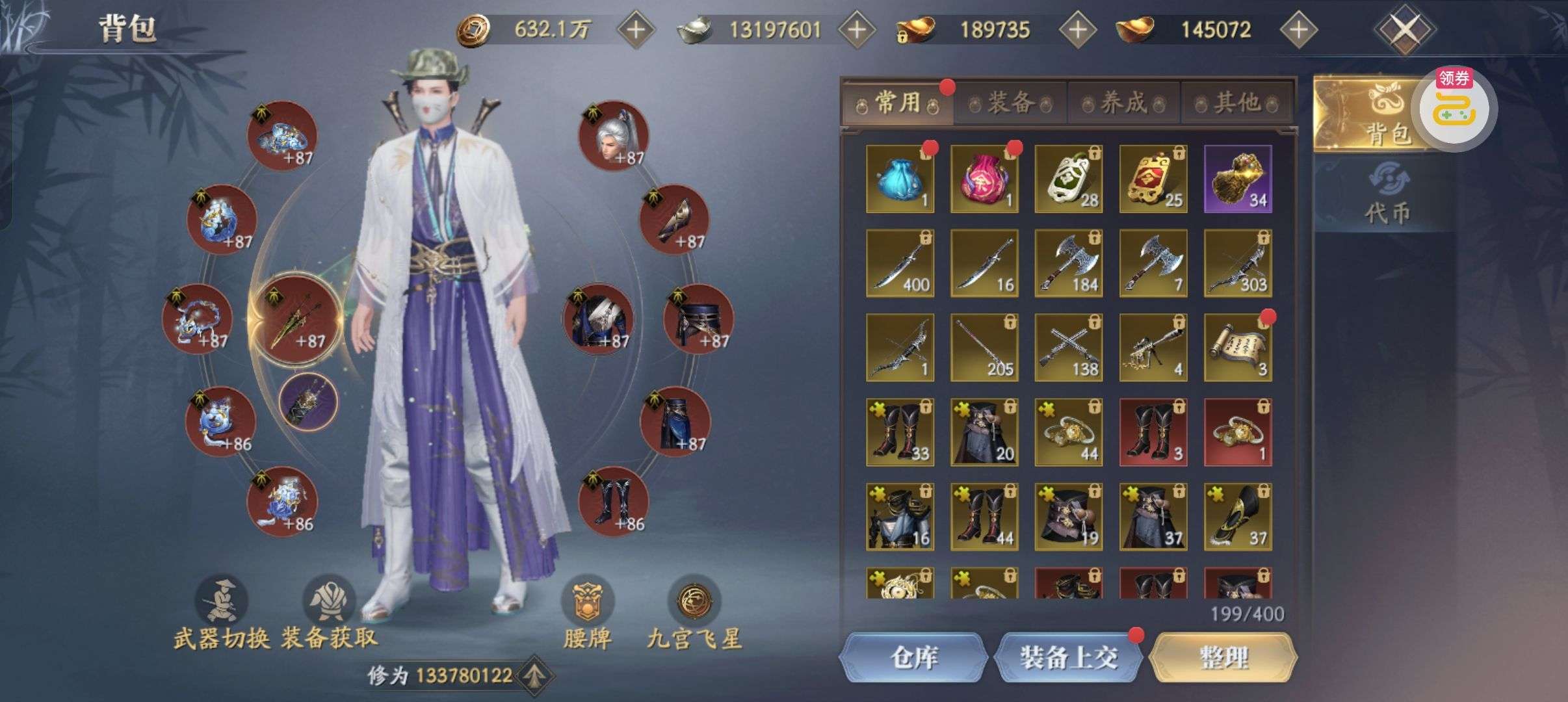 夺宝券*1、比武令*1、5星随机将魂*10(每个账号限领一次)