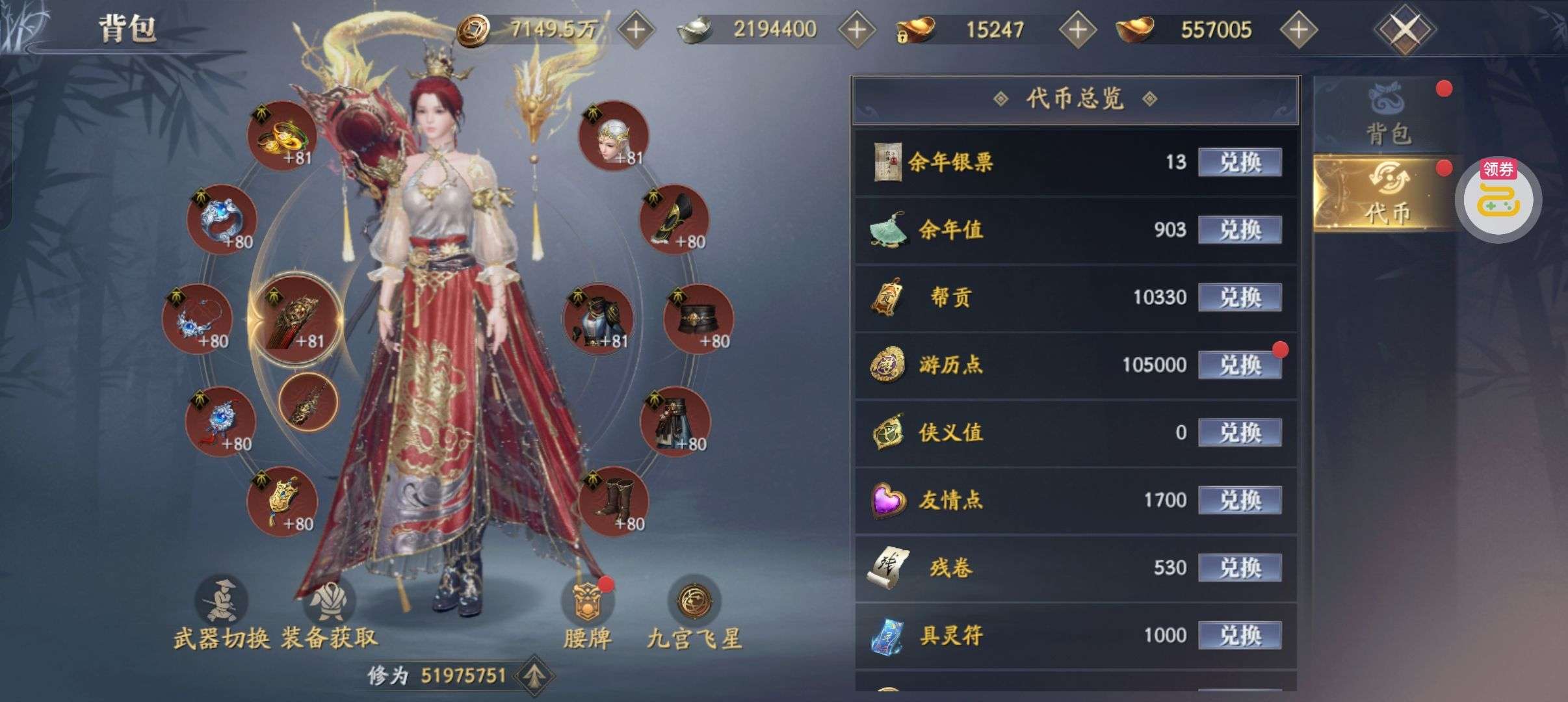 夺宝券*1、比武令*1、5星随机将魂*10(每个账号限领一次)