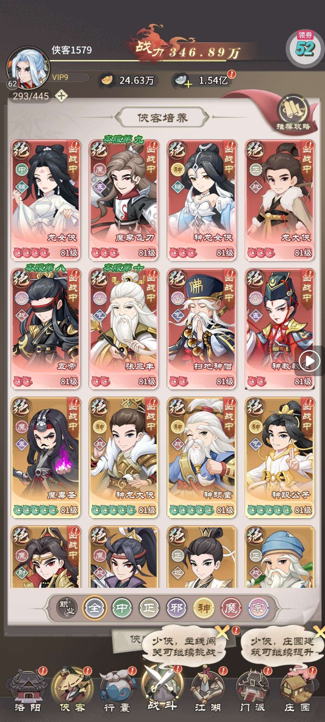 《侠客道》0.1折手游阵容推荐