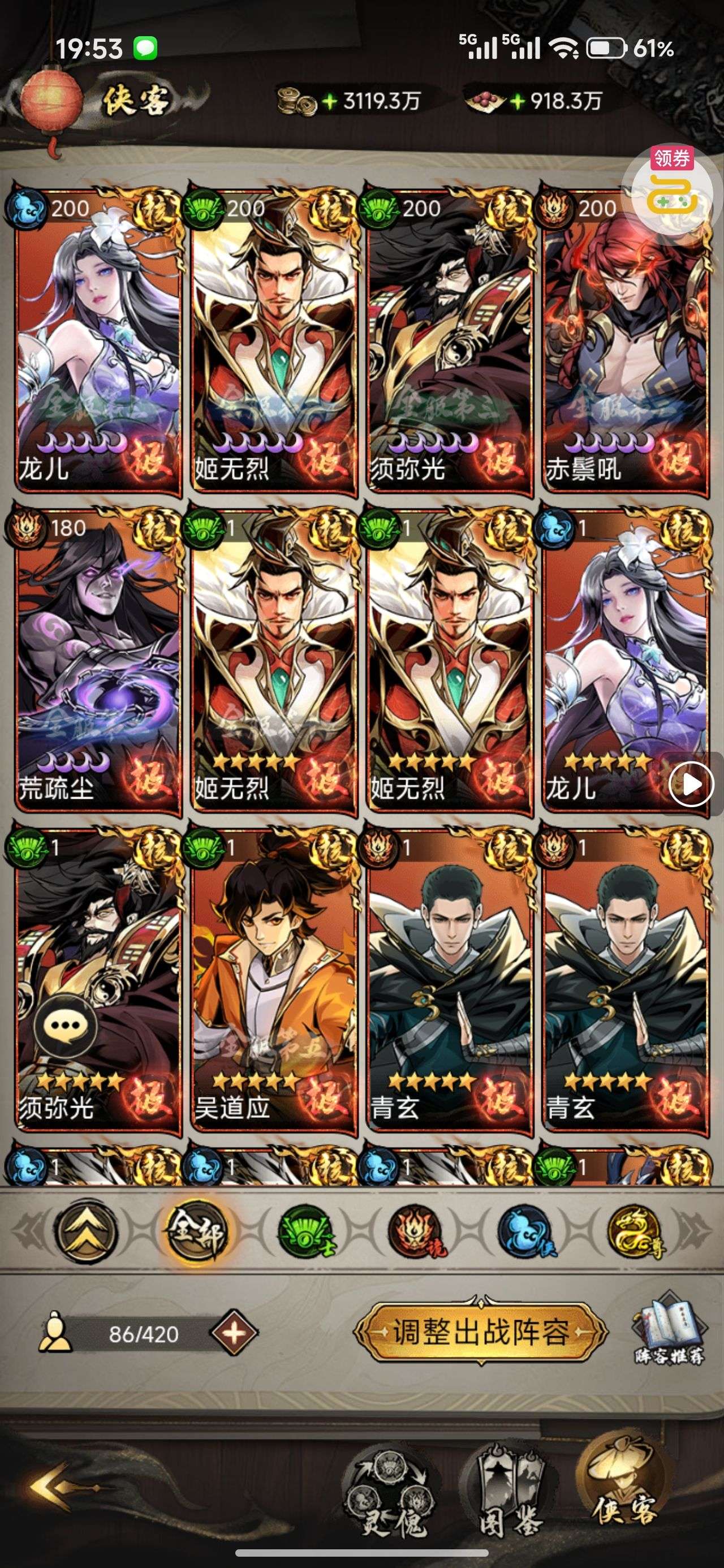 0.1折极品侠客任选