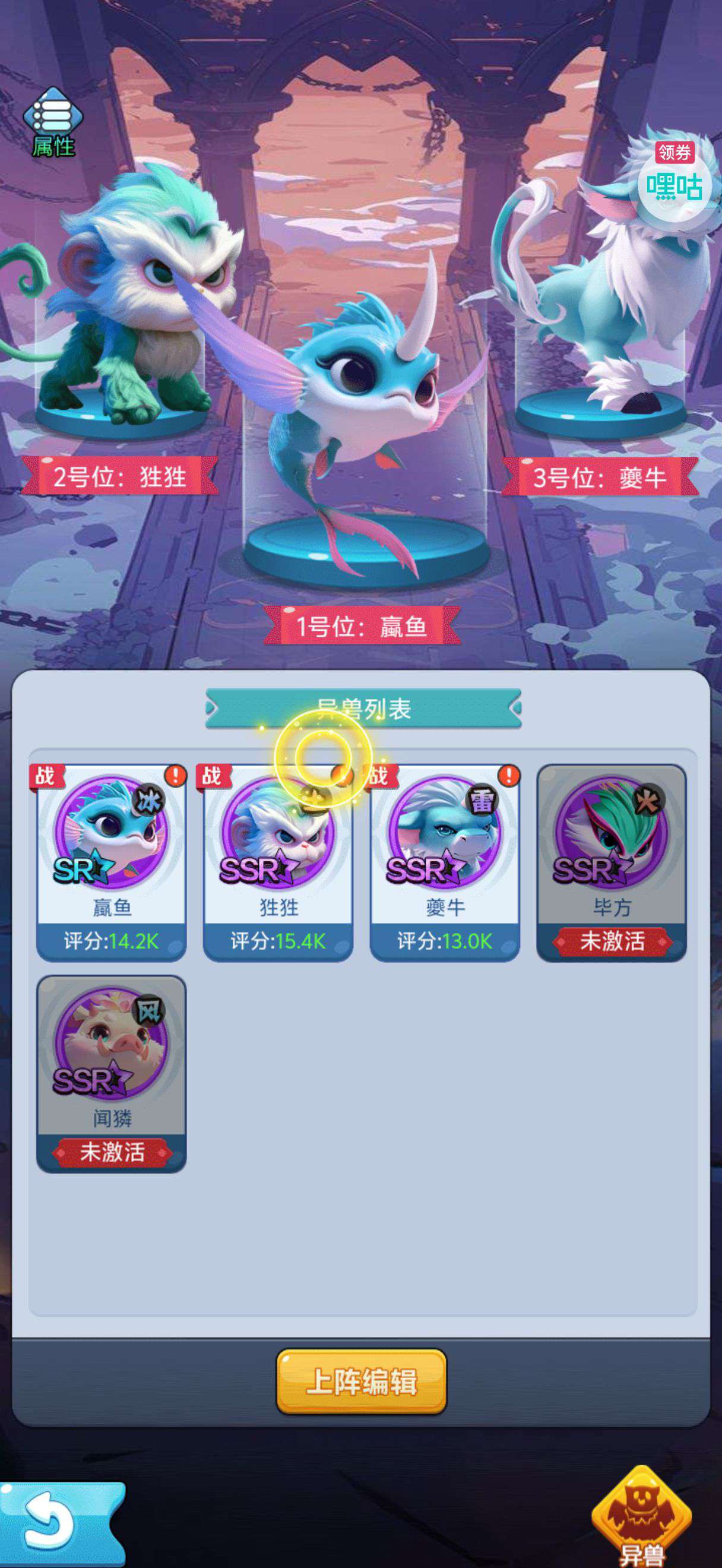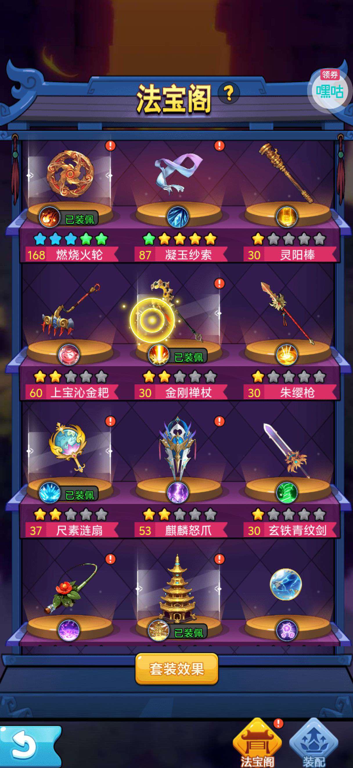 夺宝券*1、比武令*1、5星随机将魂*10(每个账号限领一次)
