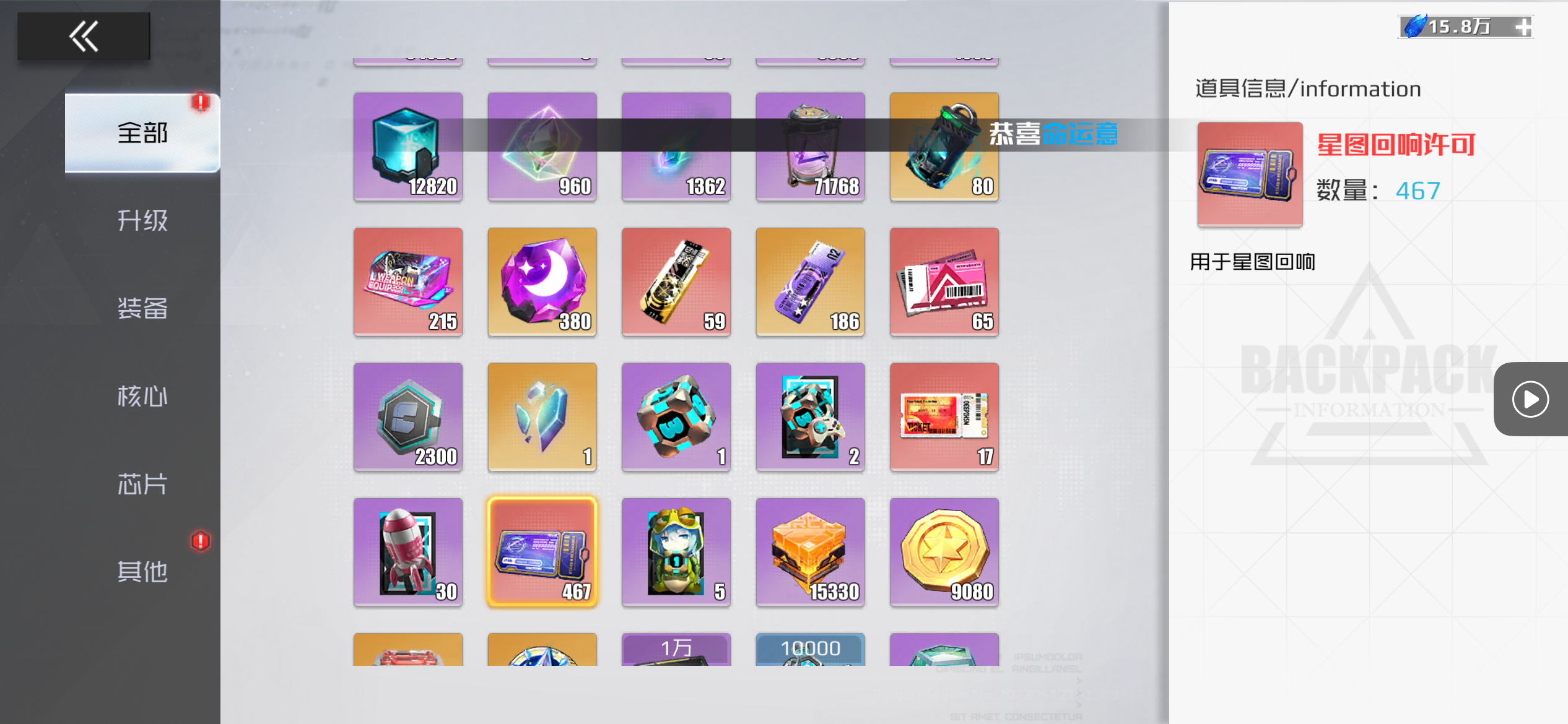 马上3套彩装备 星图券467张 略微好一点的底子号