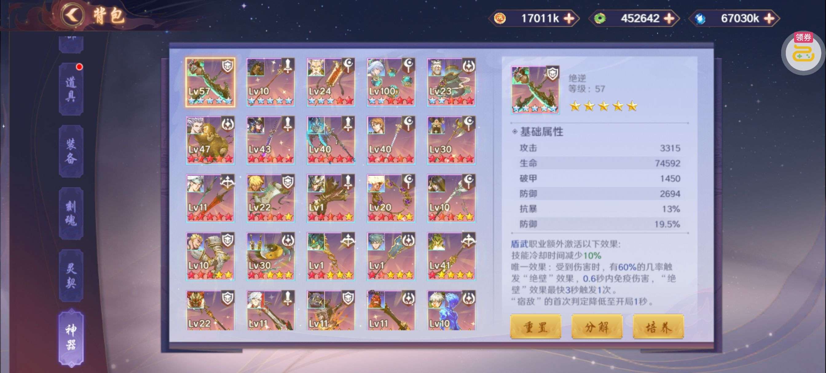 夺宝券*1、比武令*1、5星随机将魂*10(每个账号限领一次)