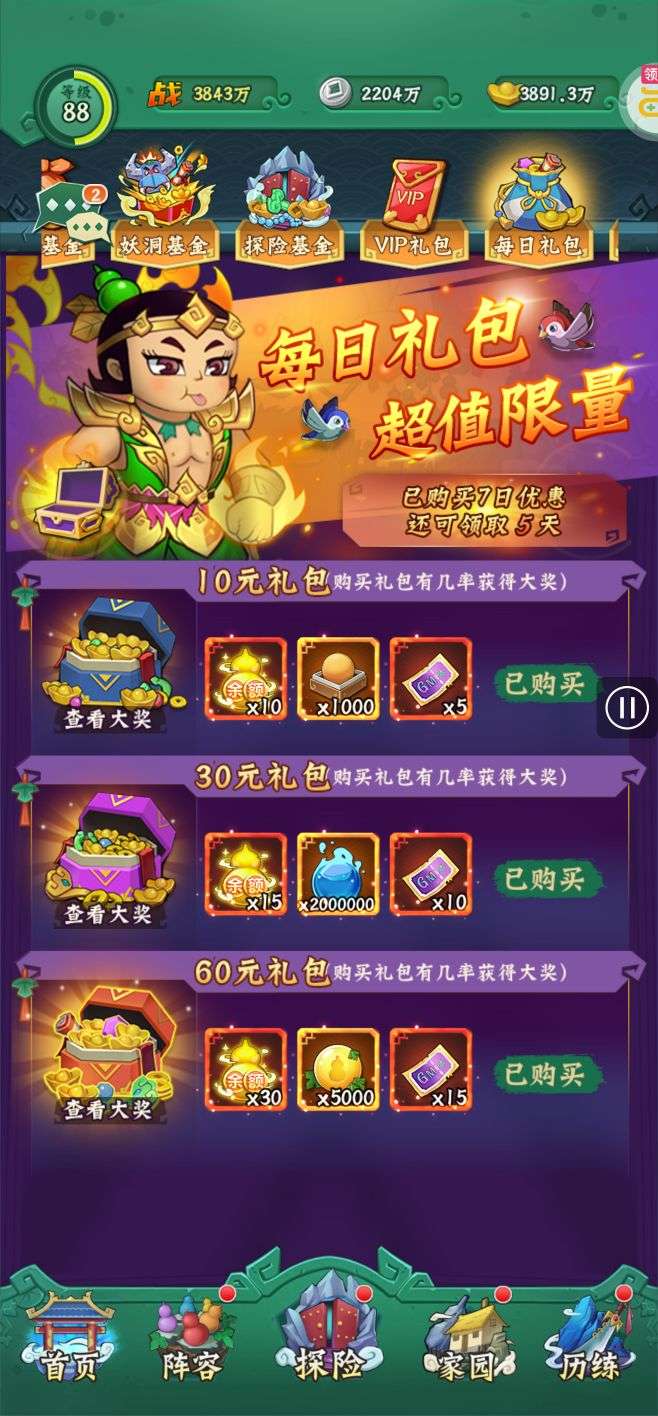 夺宝券*1、比武令*1、5星随机将魂*10(每个账号限领一次)