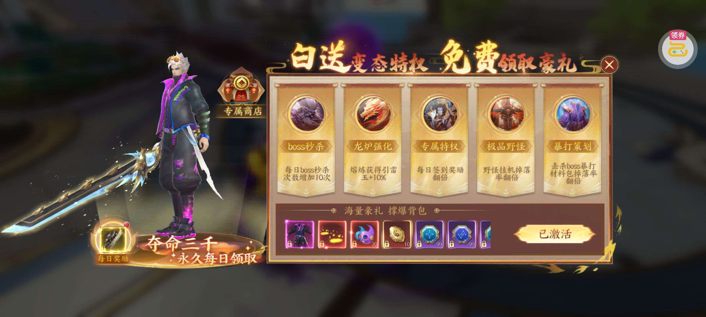 强化药剂*200、钻石招募币*20、金币*50W(每个账号限领一次)