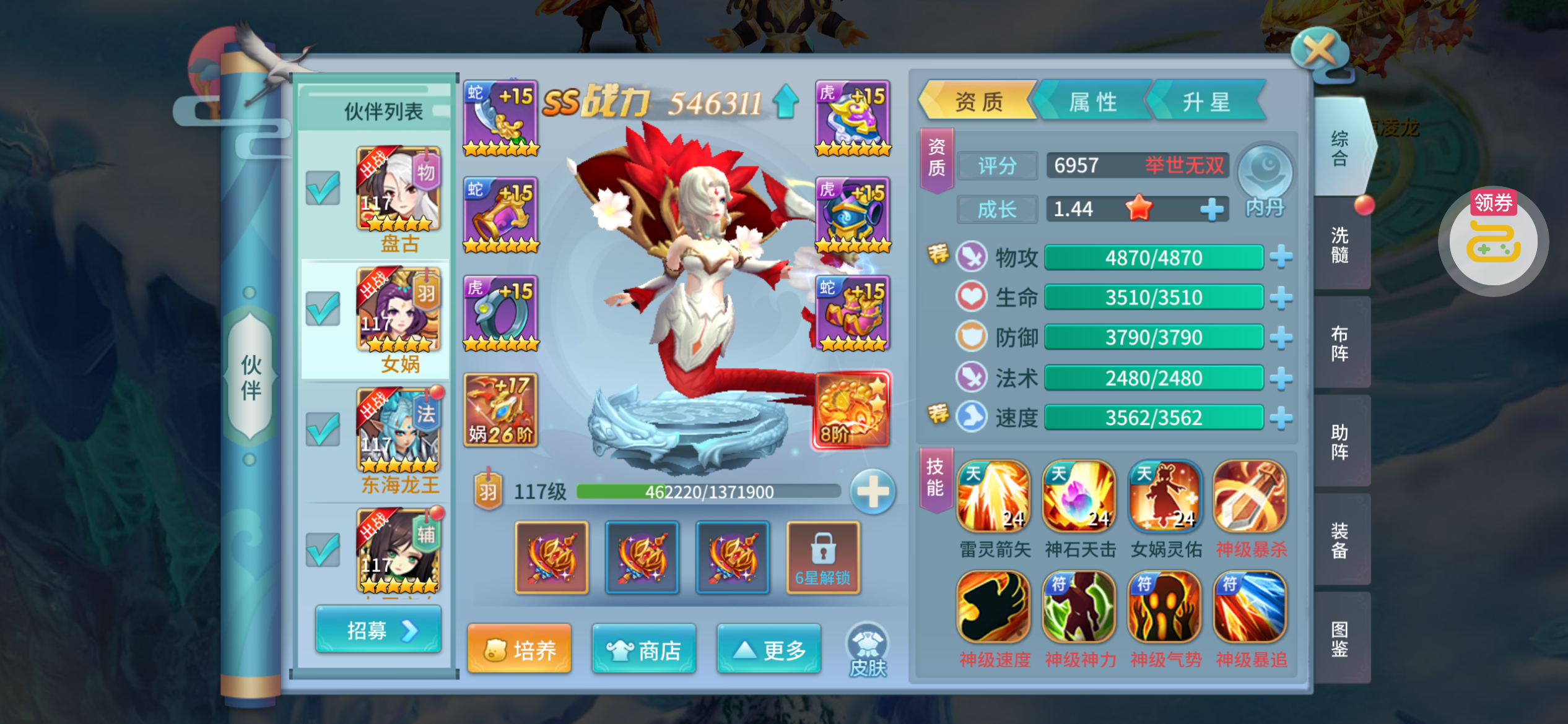 夺宝券*1、比武令*1、5星随机将魂*10(每个账号限领一次)