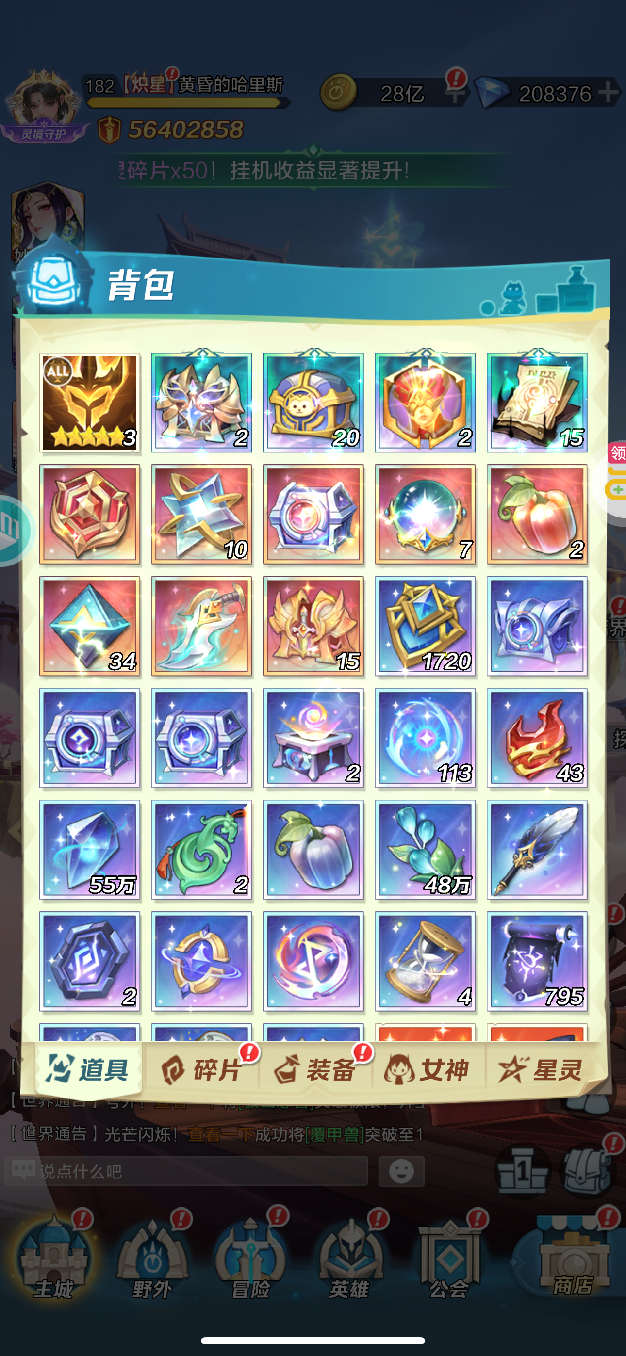 强化药剂*200、钻石招募币*20、金币*50W(每个账号限领一次)