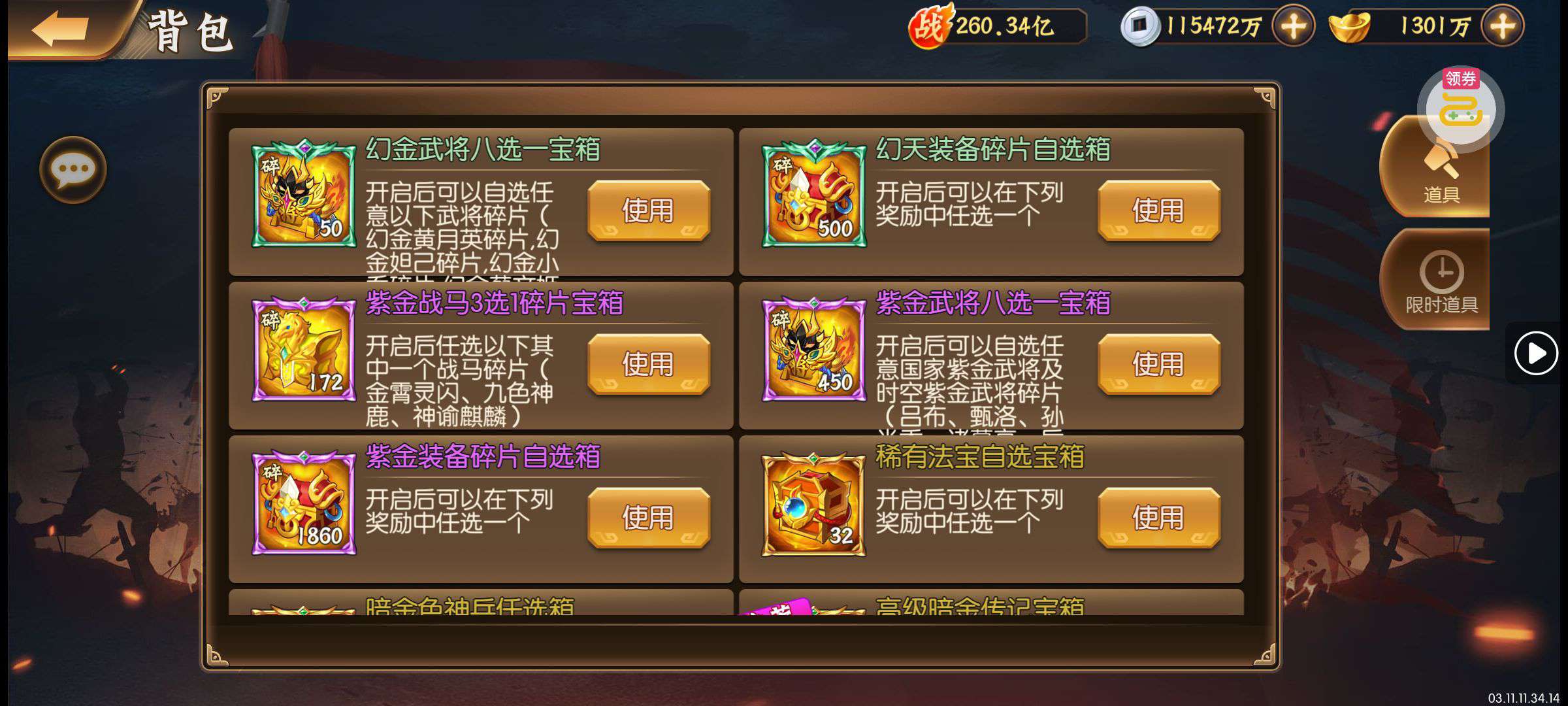 夺宝券*1、比武令*1、5星随机将魂*10(每个账号限领一次)