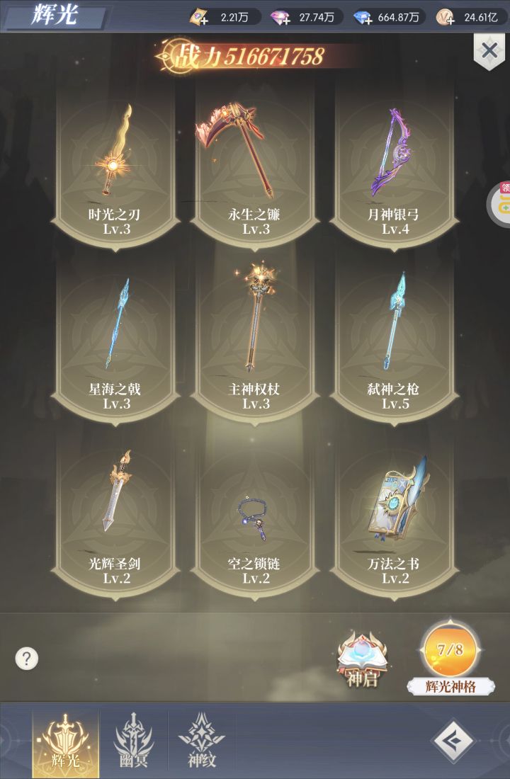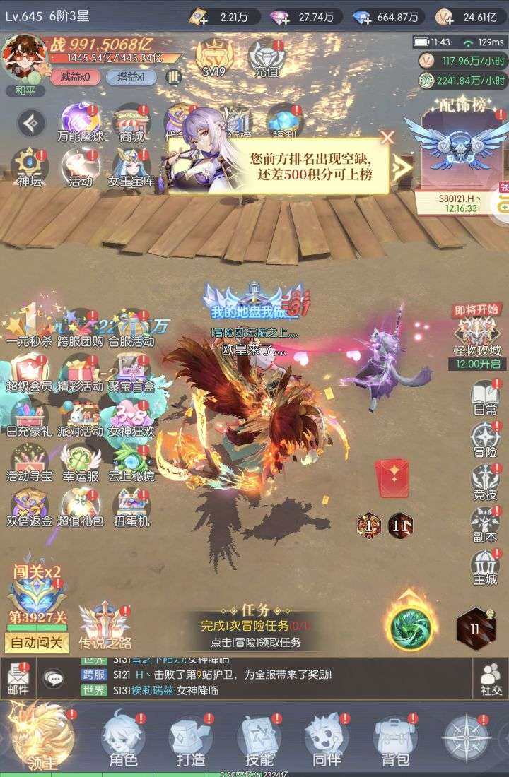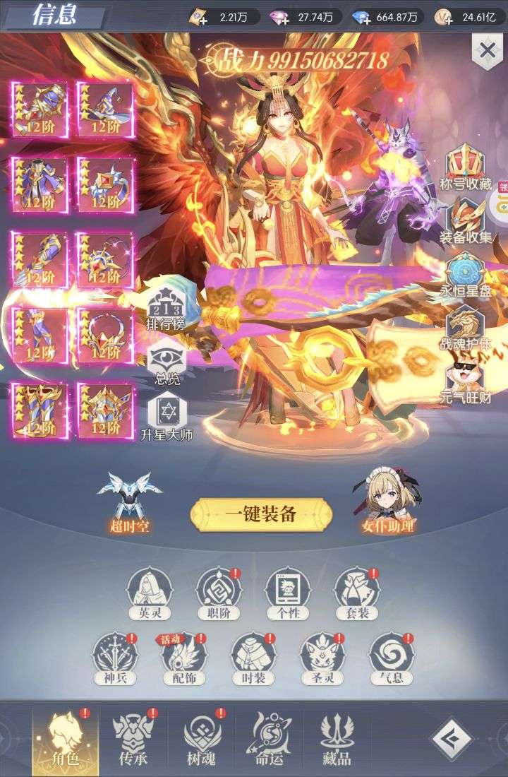 等级700级,战力145亿,累充520,发展潜力巨大