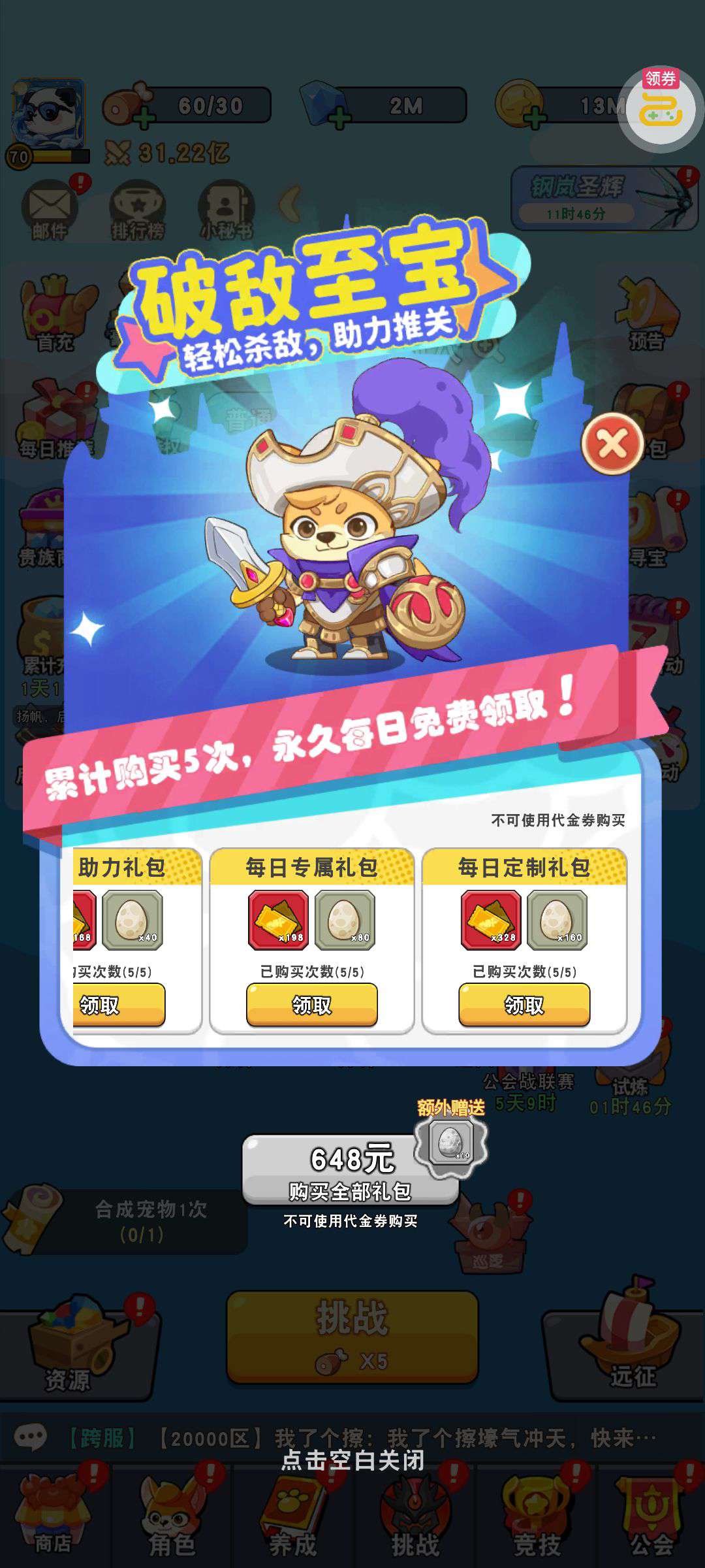强化药剂*200、钻石招募币*20、金币*50W(每个账号限领一次)