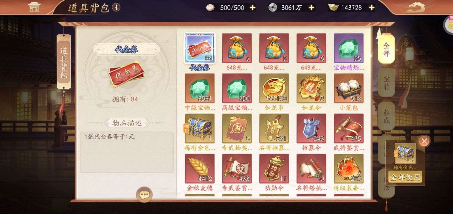 夺宝券*1、比武令*1、5星随机将魂*10(每个账号限领一次)