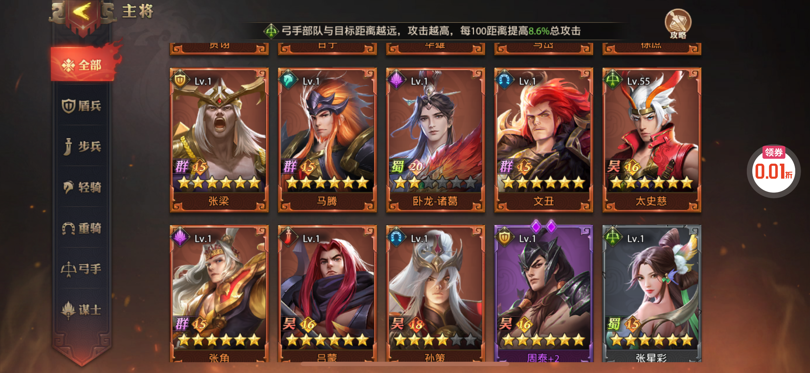 夺宝券*1、比武令*1、5星随机将魂*10(每个账号限领一次)