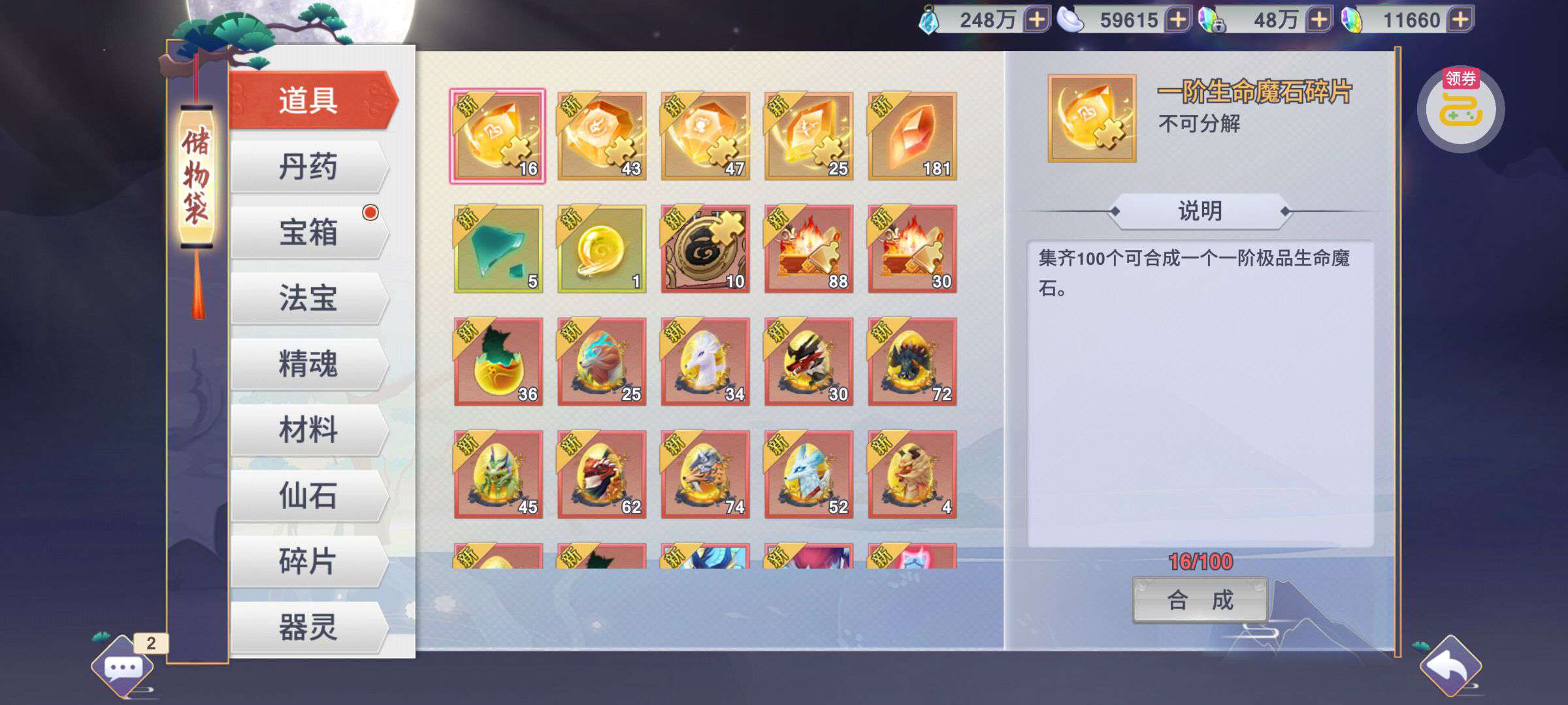 芯片熔炼石*1、离子探针*50、净化金属*50(每个账号限领一次)