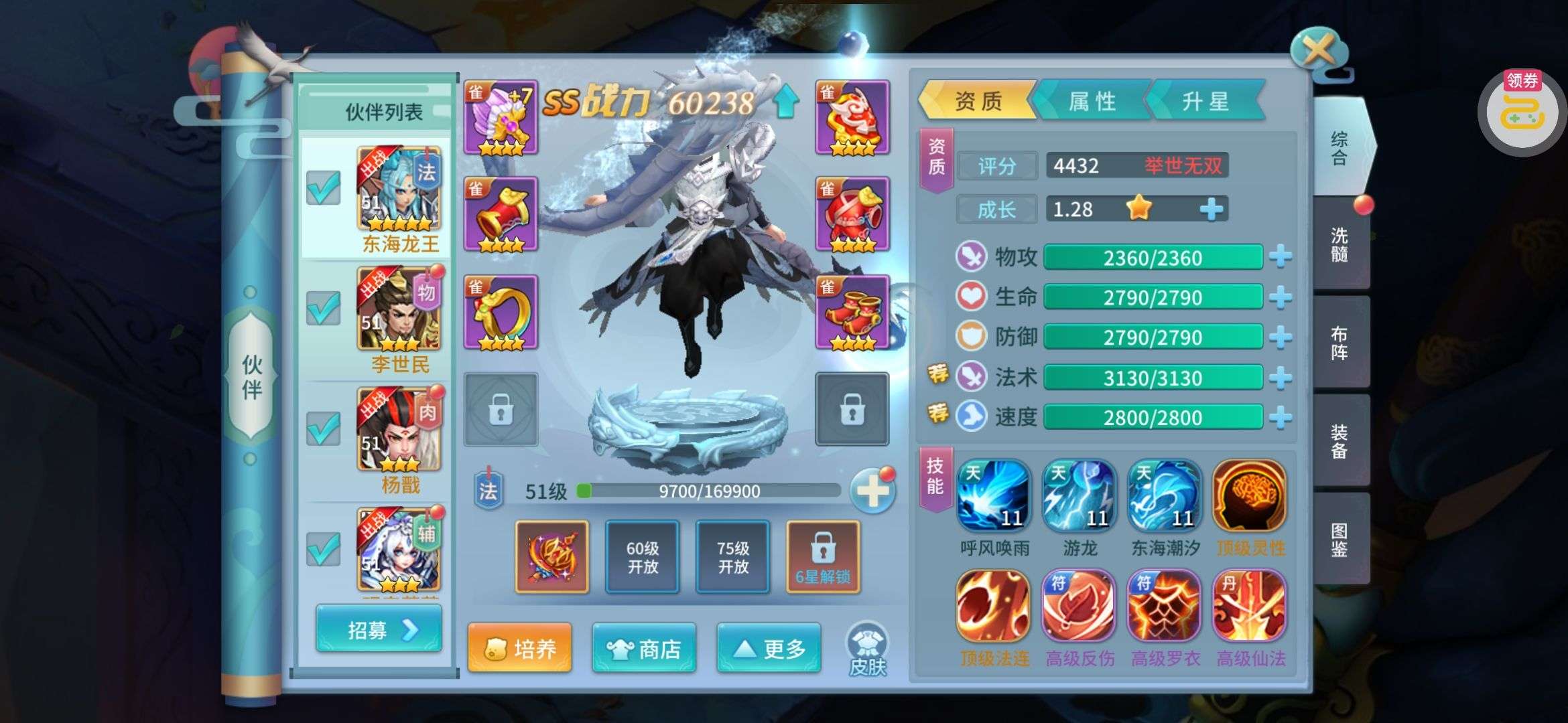 夺宝券*1、比武令*1、5星随机将魂*10(每个账号限领一次)