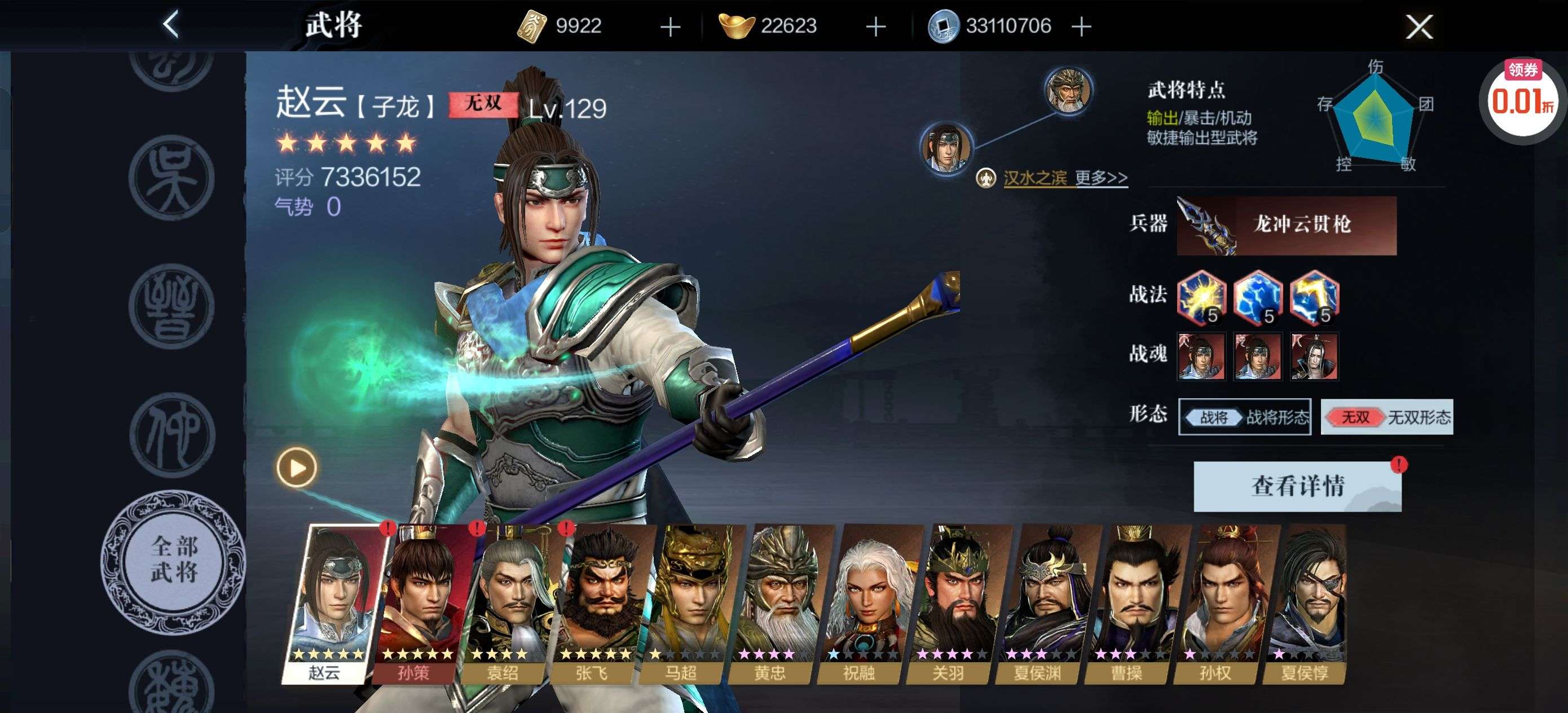 武将基本都有,就少数几个没有,高战力号,便宜甩卖了,体验武将的必购