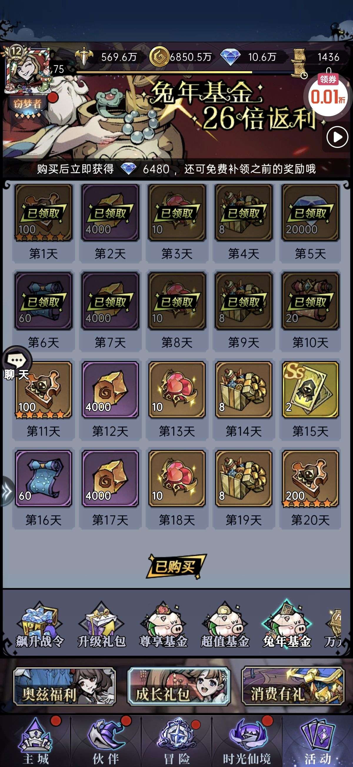 强化药剂*200、钻石招募币*20、金币*50W(每个账号限领一次)