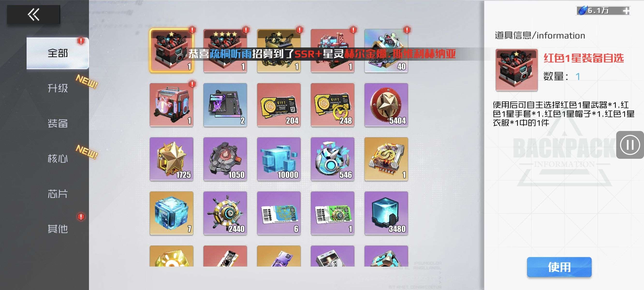 芯片熔炼石*1、离子探针*50、净化金属*50(每个账号限领一次)