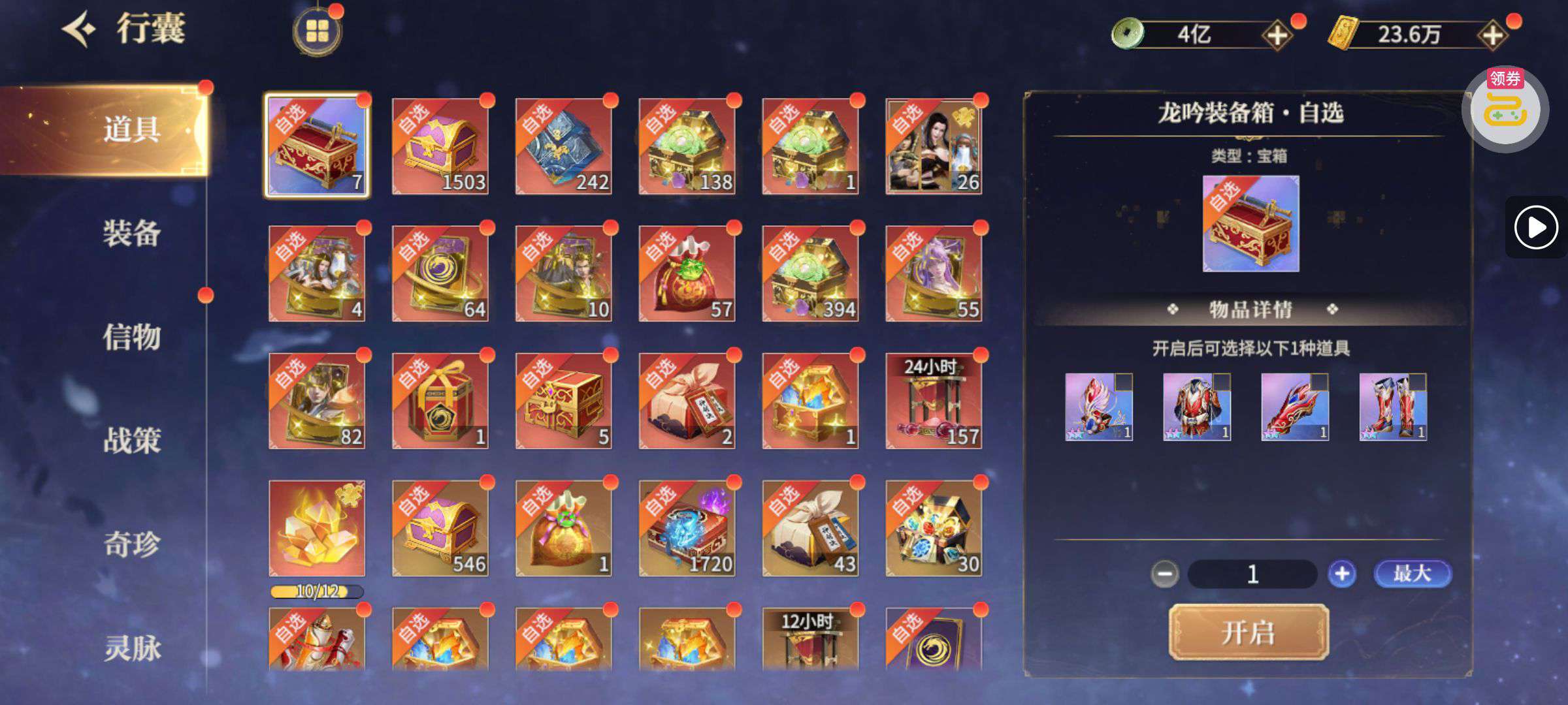 夺宝券*1、比武令*1、5星随机将魂*10(每个账号限领一次)