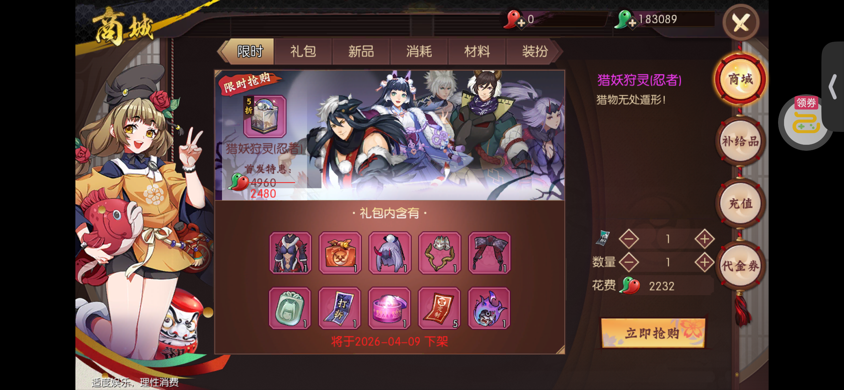 《侍忍者》上线送第七班礼包,充值永久0.05折手游!
